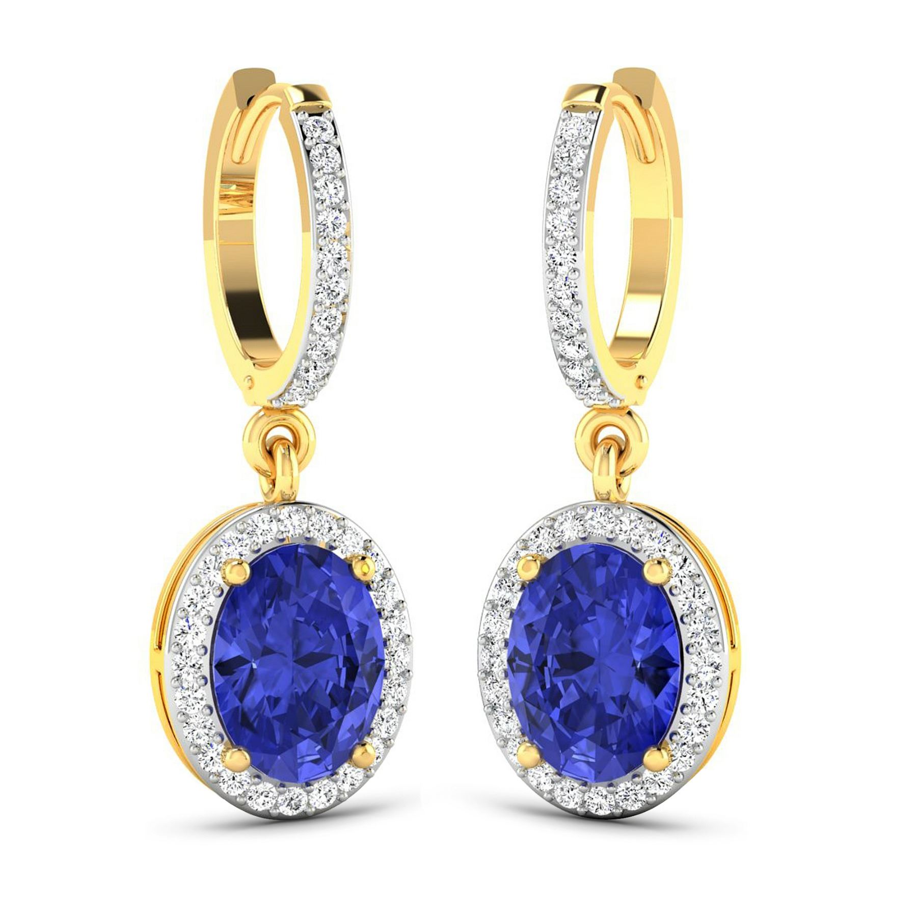 Tanzanite (AA+) Oval 8x6mm - 2Pcs + White Diamond F/C Round 1.00mm - 70Pcs ( Clip On ) ( White Pan Rhodium ) ( I1-I2/I color ) Total weight of gemstones is 2.18cts. Total Diamond weight is 0.32cts. Total weight of these earrings are 3.28 grams.