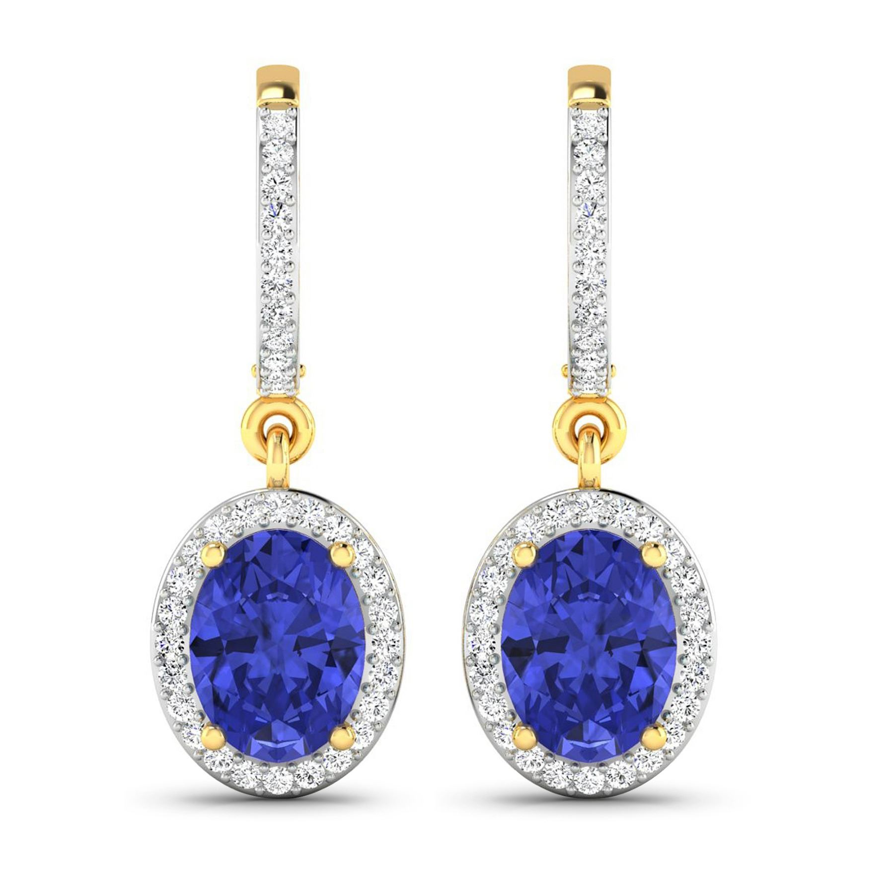 Tanzanite (AA+) Oval 8x6mm - 2Pcs + White Diamond F/C Round 1.00mm - 70Pcs ( Clip On ) ( White Pan Rhodium ) ( I1-I2/I color ) Total weight of gemstones is 2.18cts. Total Diamond weight is 0.32cts. Total weight of these earrings are 3.28 grams.