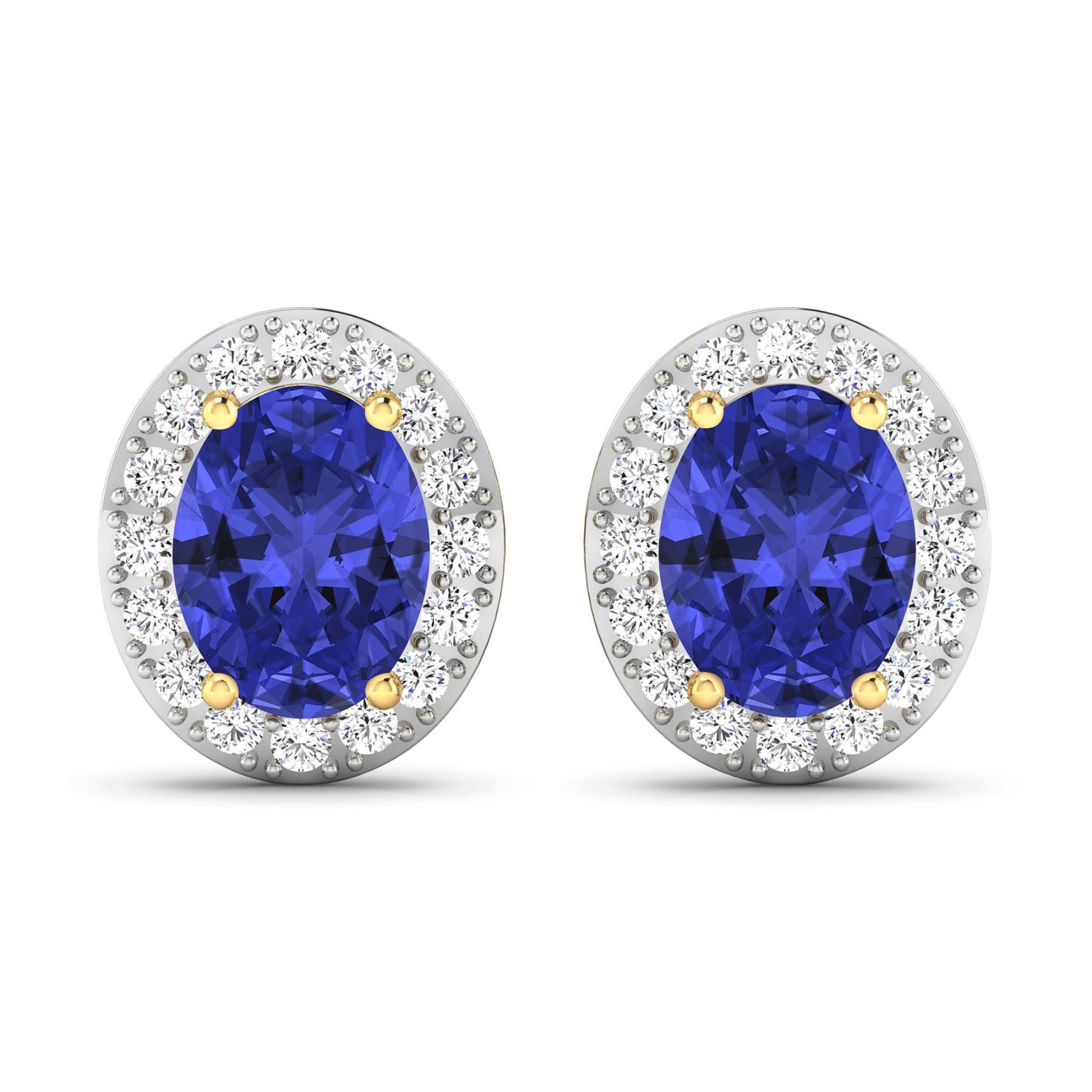 Tanzanite (AA+) Oval 8x6mm - 2Pcs + White Diamond F/C Round 1.50mm - 32Pcs ( Diamond Quality : SI-2/HI ) ( Push Post ) Total weight of gemstones is 2.18cts. Total Diamond weight is 0.44cts. Total weight of these earrings are 2.66 grams.