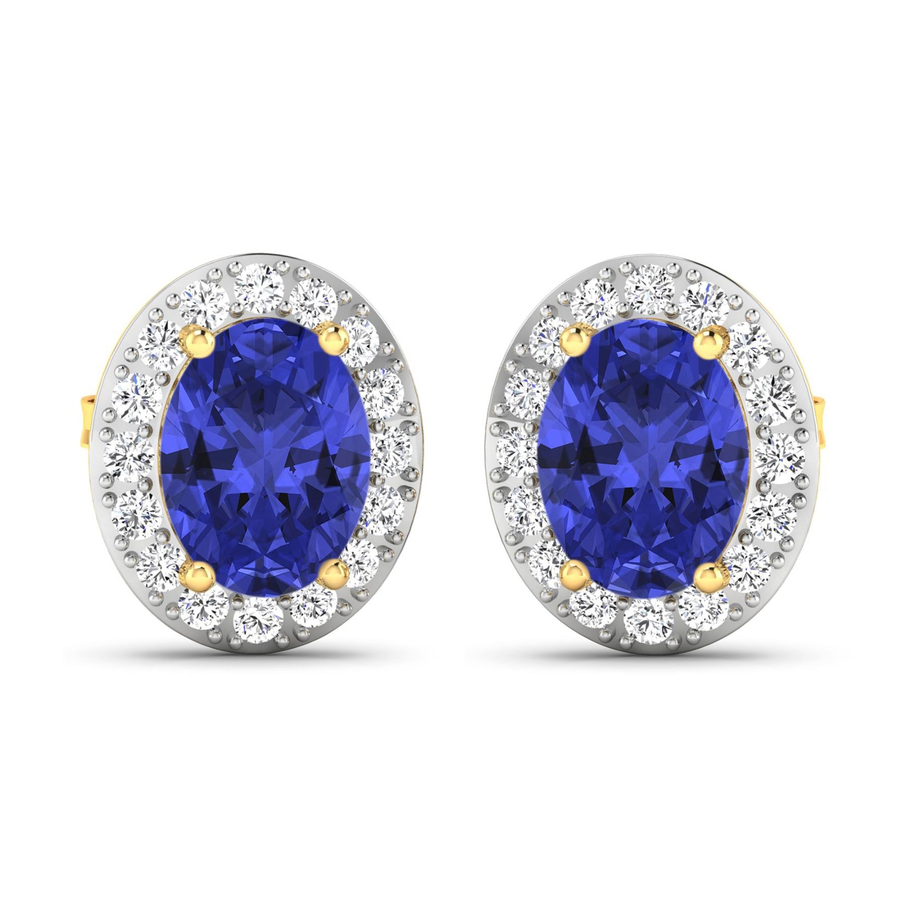 Tanzanite (AA+) Oval 8x6mm - 2Pcs + White Diamond F/C Round 1.50mm - 32Pcs ( Diamond Quality : SI-2/HI ) ( Push Post ) Total weight of gemstones is 2.18cts. Total Diamond weight is 0.44cts. Total weight of these earrings are 2.66 grams.