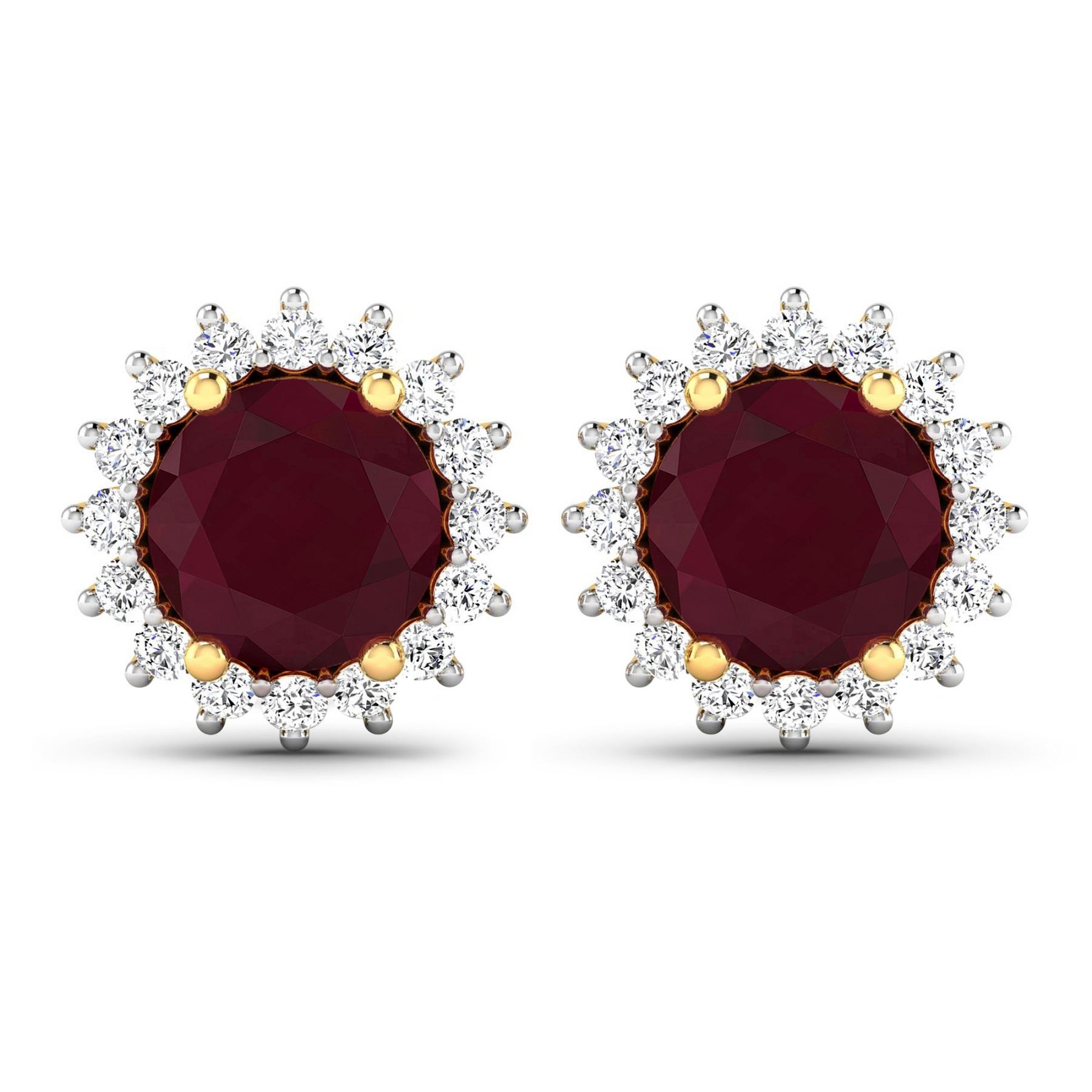 Ruby (AA) Round 6.00mm - 2Pcs + White Diamond F/C Round 1.30mm - 32Pcs ( Push-Post ) ( White Pan Rhodium ) ( I1-I2/I color ) Total weight of gemstones is 2.1cts. Total Diamond weight is 0.32cts. Total weight of these earrings are 2.29 grams.