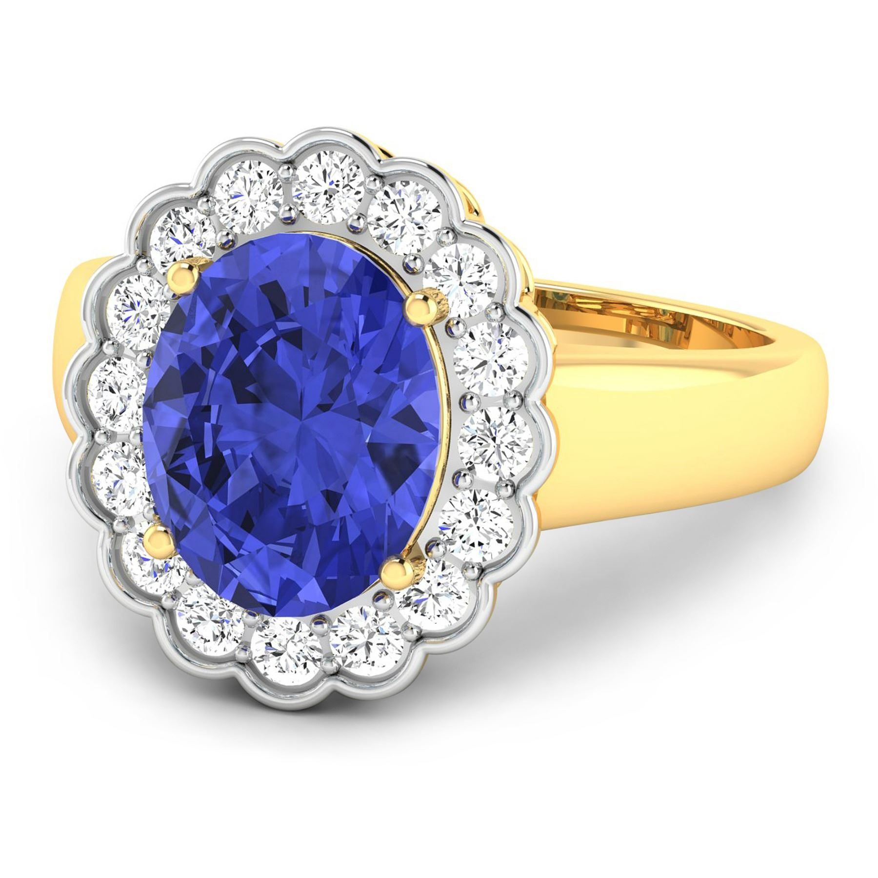 Tanzanite (AA+) Oval 10x8mm - 1Pc + White Diamond F/C Round 2.00mm - 16Pcs ( White Pan Rhodium ) ( SI-2/HI ) Total weight of gemstone is 2.21cts. Total Diamond weight is 0.48cts. Total weight of this ring is 4.16 grams. Ring size 7.