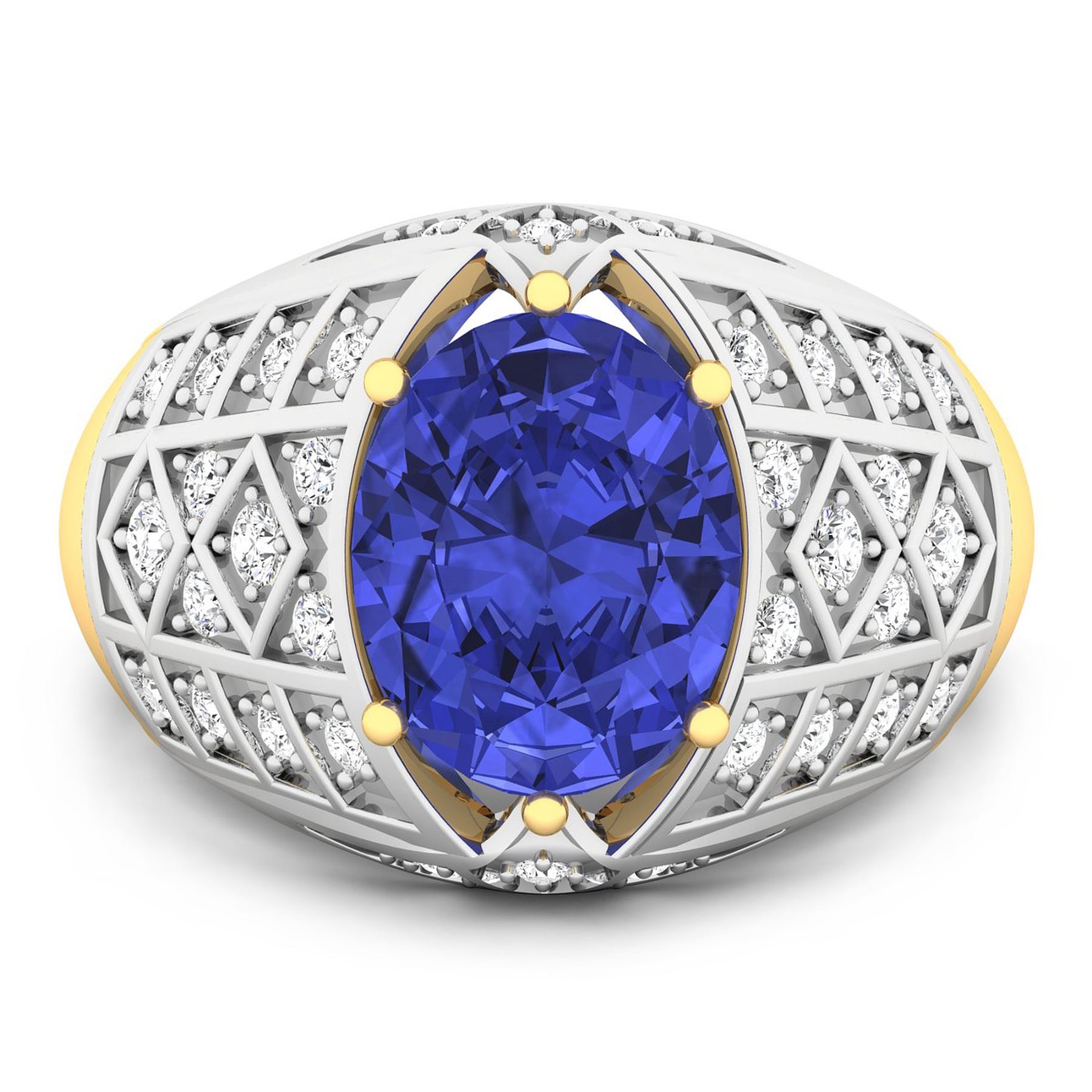 Tanzanite (AA+) Oval 10x8mm - 1Pc + White Diamond F/C Round 1.80mm - 4Pcs + White Diamond F/C Round 1.50mm - 8Pcs + White Diamond F/C Round 1.30mm - 16Pcs + White Diamond F/C Round 1.20mm - 6Pcs ( White Pan Rhodium ) ( SI-2/HI ) Total weight of gemstone is 2.21cts. Total Diamond weight is 0.42cts. Total weight of this ring is 4.6 grams. Ring size 7.