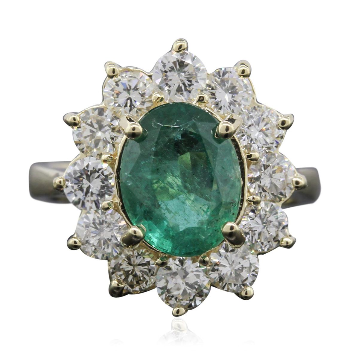 Great Condition! One electronically tested 14KT yellow gold Ladies combination cast & assembled ring with a bright polish finish. Condition is new. Identified with markings of "14K". Containing: One prong set oval modified mixed cut natural emerald, measuring 9.80 x 7.70 x 5.20mm, approximate weight of 2.29ct., clarity is moderately included, type III, medium light, very slightly grayish, very slightly bluish green color, (GIA vslbG 4/3), cut is good. Colored gemstones are presumed to have been subjected to commonly used and possible undetectable color/clarity enhancement processes. Twelve prong set round brilliant cut diamonds, measuring 3.40 - 3.40 x 2.04mm (depth est.) approximate total weight of 12 Stones = 1.76ct. Clarity of I-1, Color of J - K, Cut is Good. Total Weight of Colored Stones 2.29ct. Total Weight of Diamonds 1.76ct. Total Weight of Ring 6.00 grams. GGL Appraised at $9,620.00.