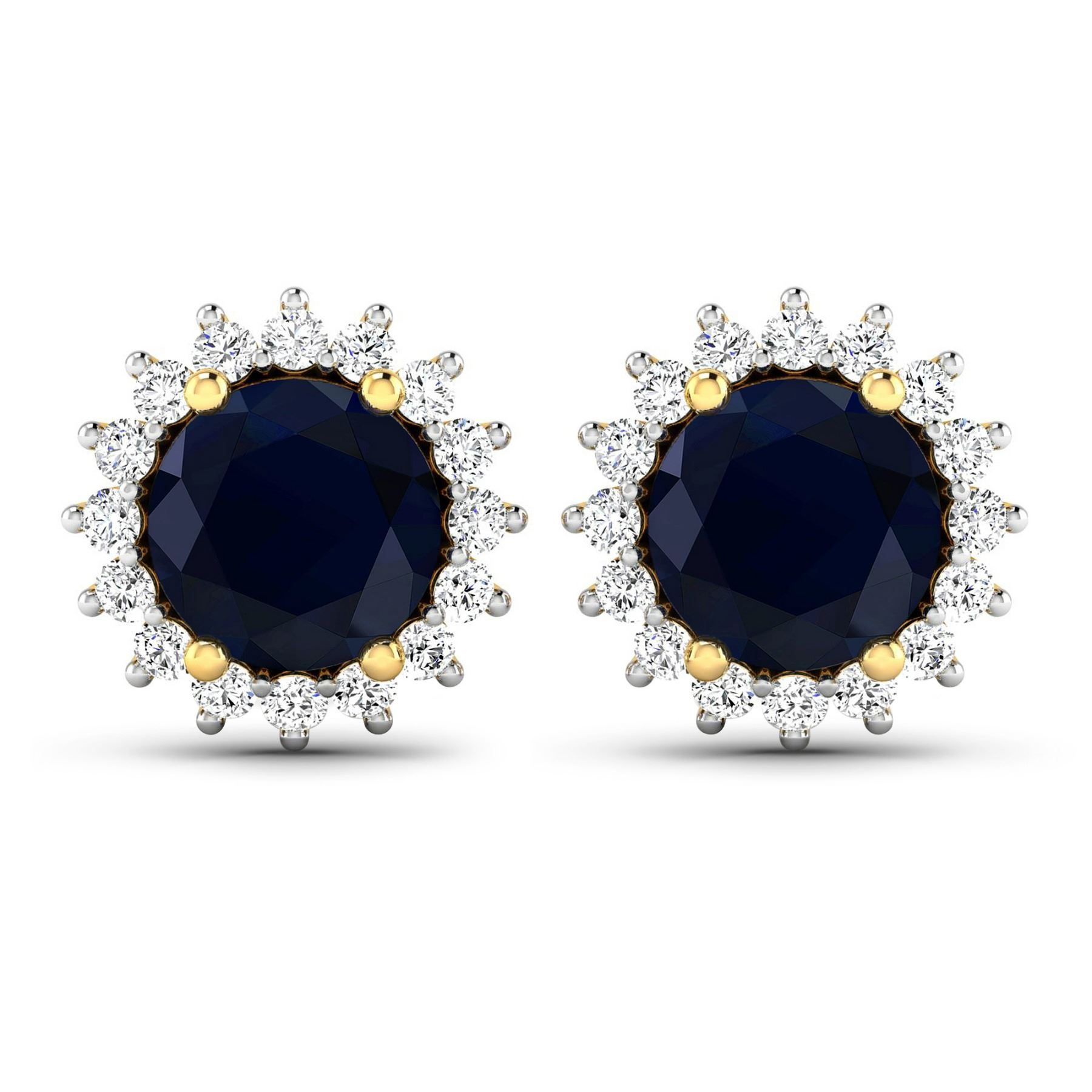 Blue Sapphire (AA) Round 6.00mm - 2Pcs + White Diamond F/C Round 1.30mm - 32Pcs ( Push-Post ) ( White Pan Rhodium ) ( I1-I2/I color ) Total weight of gemstones is 2.2cts. Total Diamond weight is 0.32cts. Total weight of these earrings are 2.31 grams.