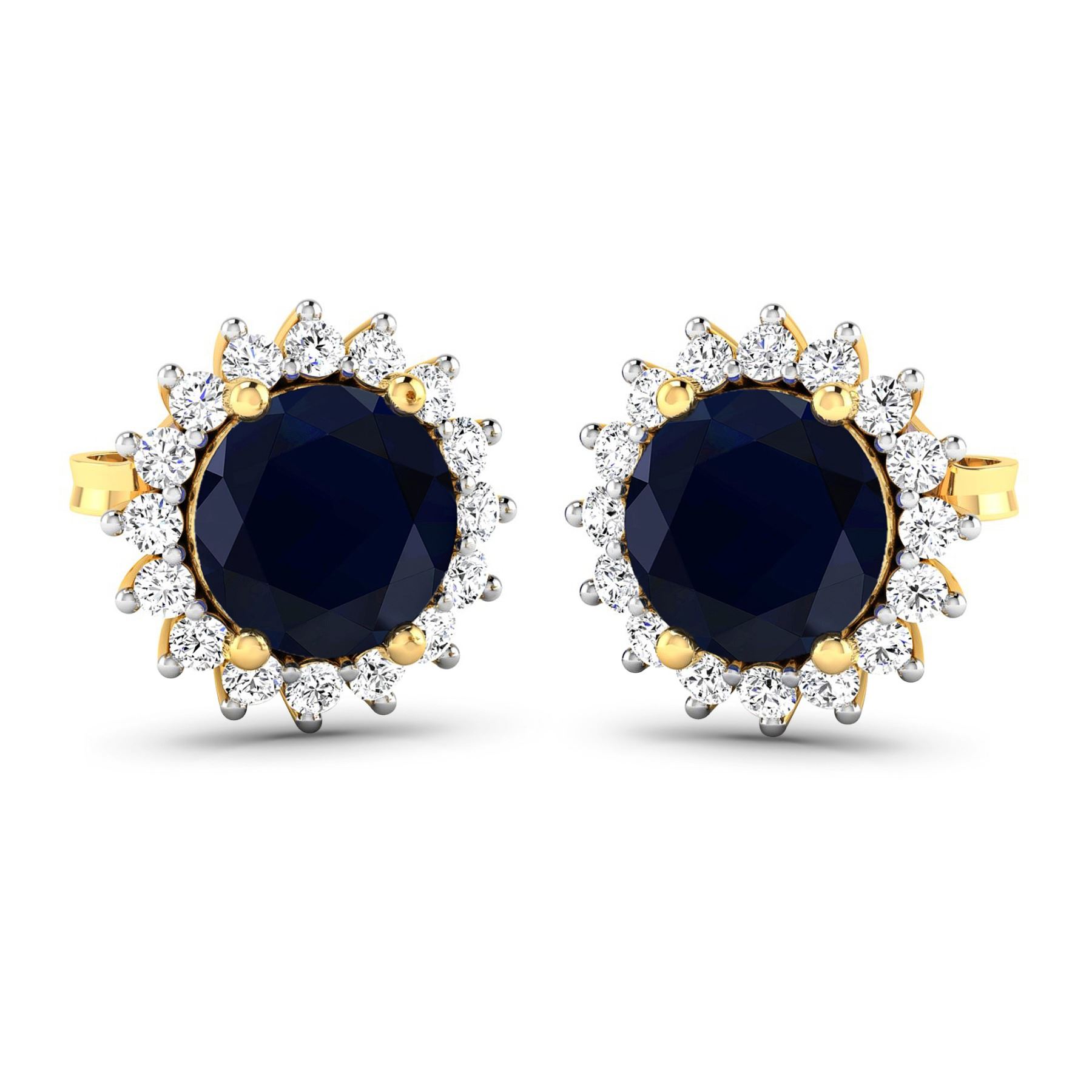 Blue Sapphire (AA) Round 6.00mm - 2Pcs + White Diamond F/C Round 1.30mm - 32Pcs ( Push-Post ) ( White Pan Rhodium ) ( I1-I2/I color ) Total weight of gemstones is 2.2cts. Total Diamond weight is 0.32cts. Total weight of these earrings are 2.31 grams.