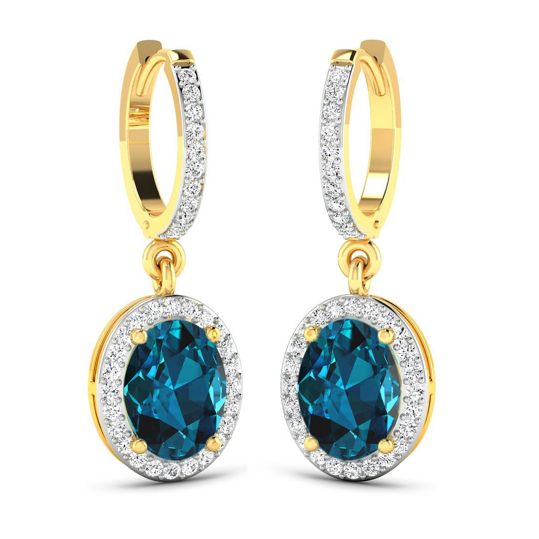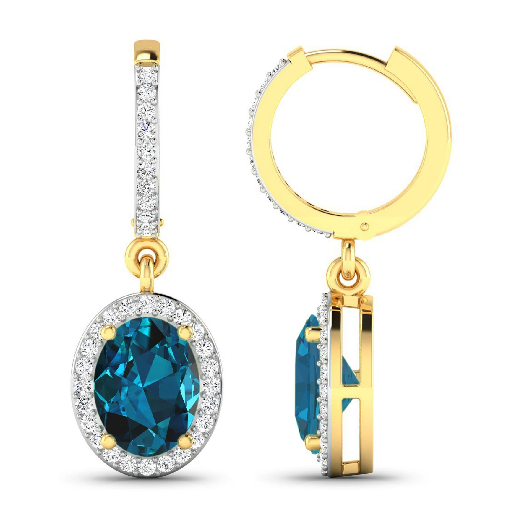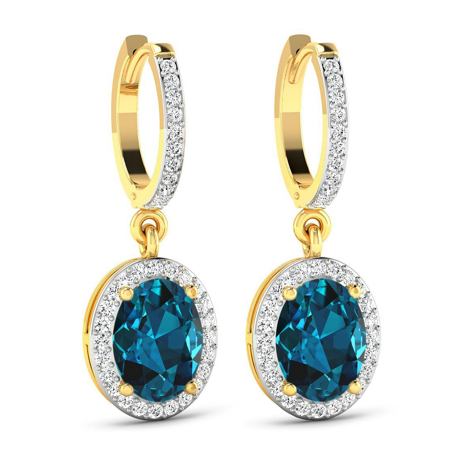 14KT Yellow Gold 2.2ctw London Blue Topaz and Diamond Earrings