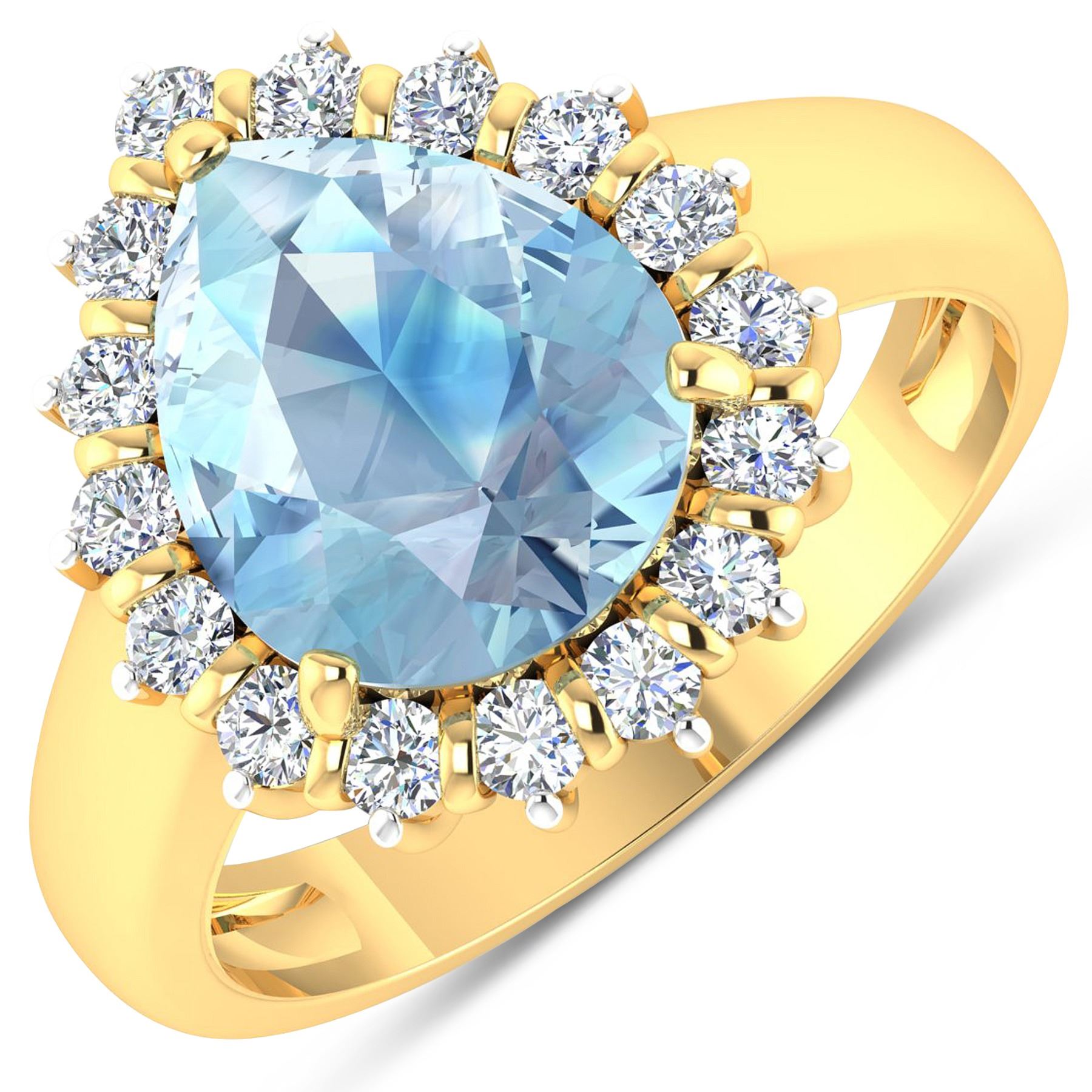 14KT Yellow Gold 2.3ct Aquamarine and Diamond Ring