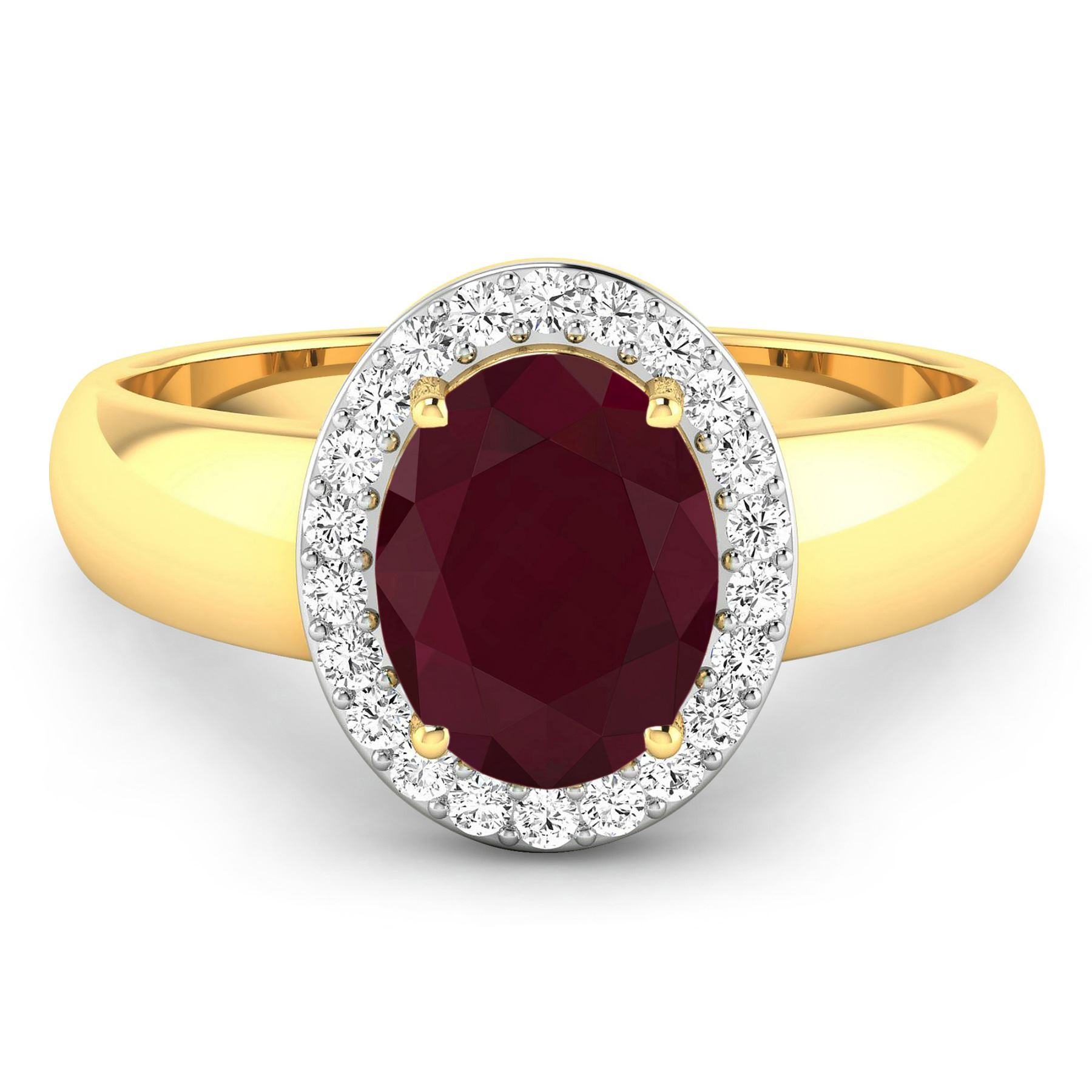 Ruby (AA) Oval 9x7mm - 1Pc + White Diamond F/C Round 1.30mm - 22Pcs ( White Pan Rhodium ) (I1-I2/I color) ( With J Back ). Total weight of gemstone is 2.3cts. Total weight of Diamonds is 0.22cts. Total weight of this ring is 4.23 grams. Ring size 7.