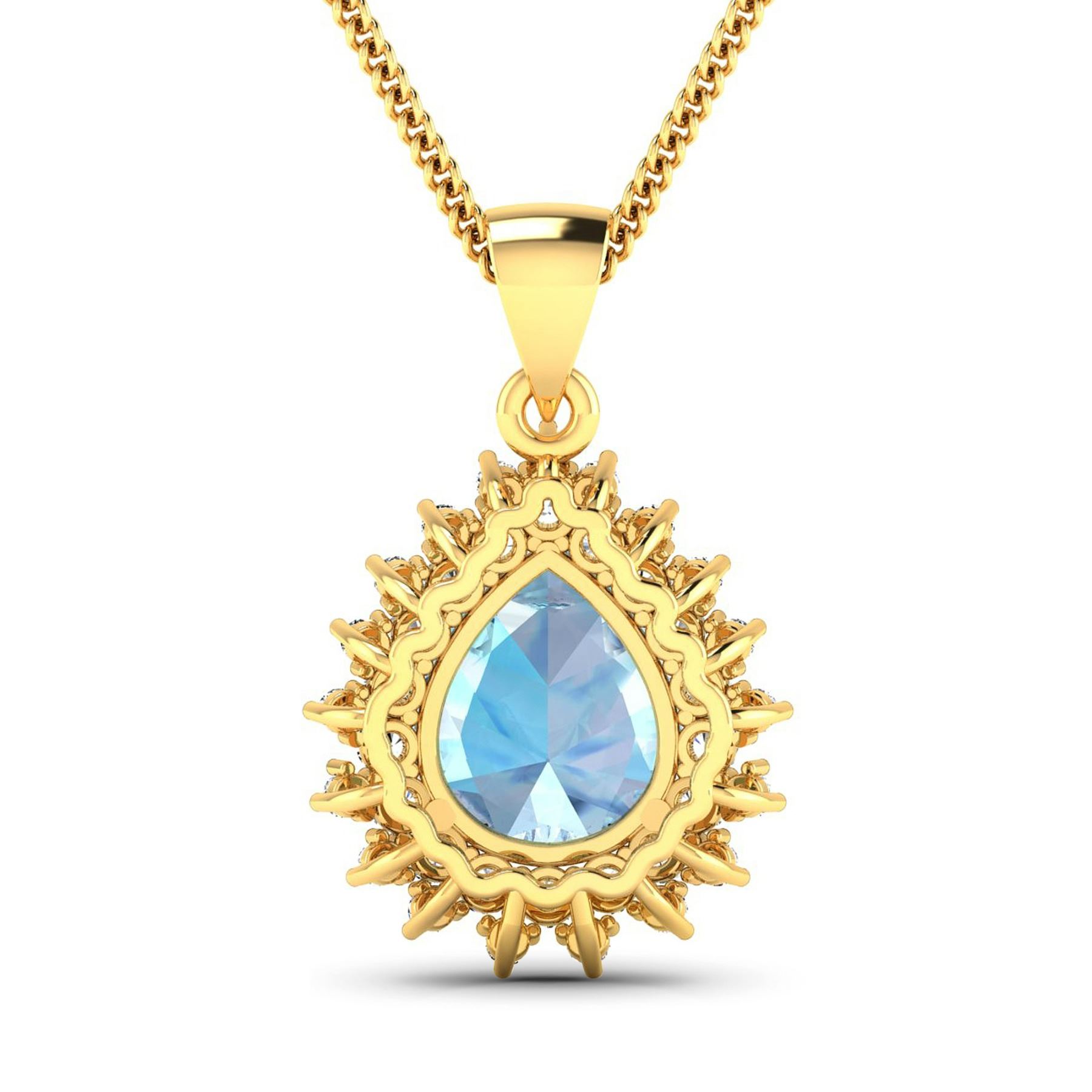 Aquamarine Pears 11x9mm - 1Pc + White Diamond F/C Round 2.00mm - 18Pcs + White Diamond F/C Round 1.50mm - 19Pcs ( Diamond Quality : SI-2/HI ) Total weight of gemstone is 2.3cts. Total Diamond weight is 0.8cts. Total weight of this pendant is 3.05 grams.