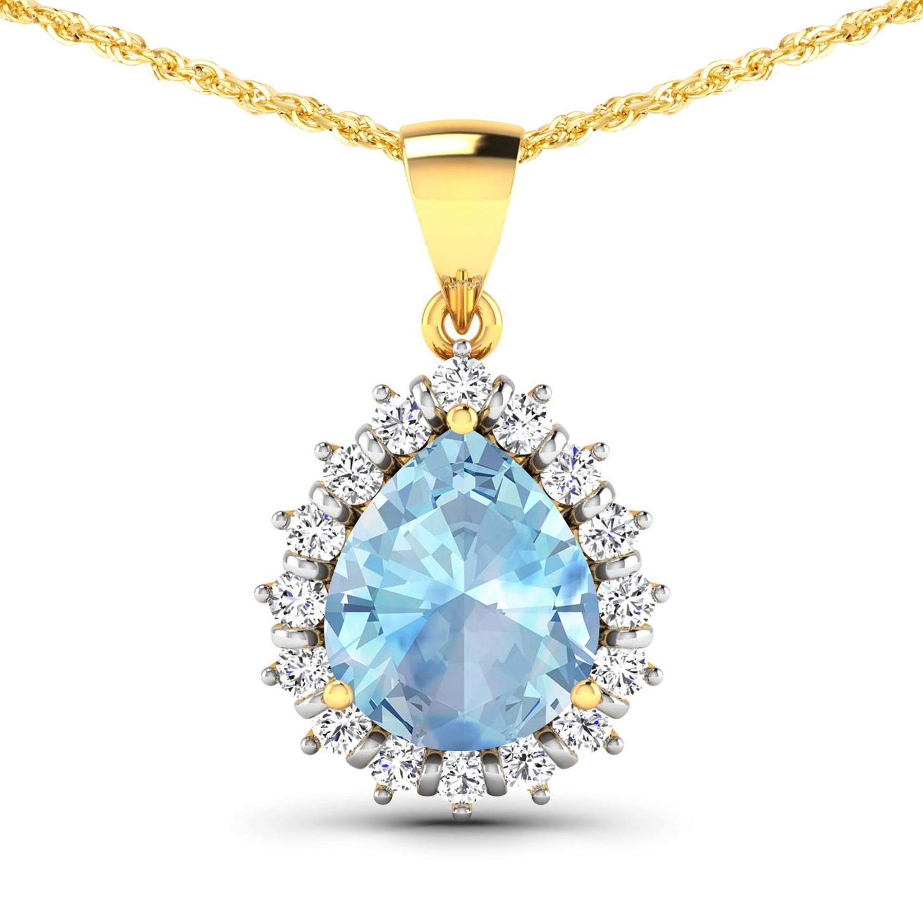 Aquamarine Pears 11x9mm - 1Pc + White Diamond F/C Round 2.00mm - 16Pcs ( Diamond Quality : SI-2/HI ) Total weight of gemstone is 2.3cts. Total Diamond weight is 0.48cts. Total weight of this pendant is 2.93 grams.