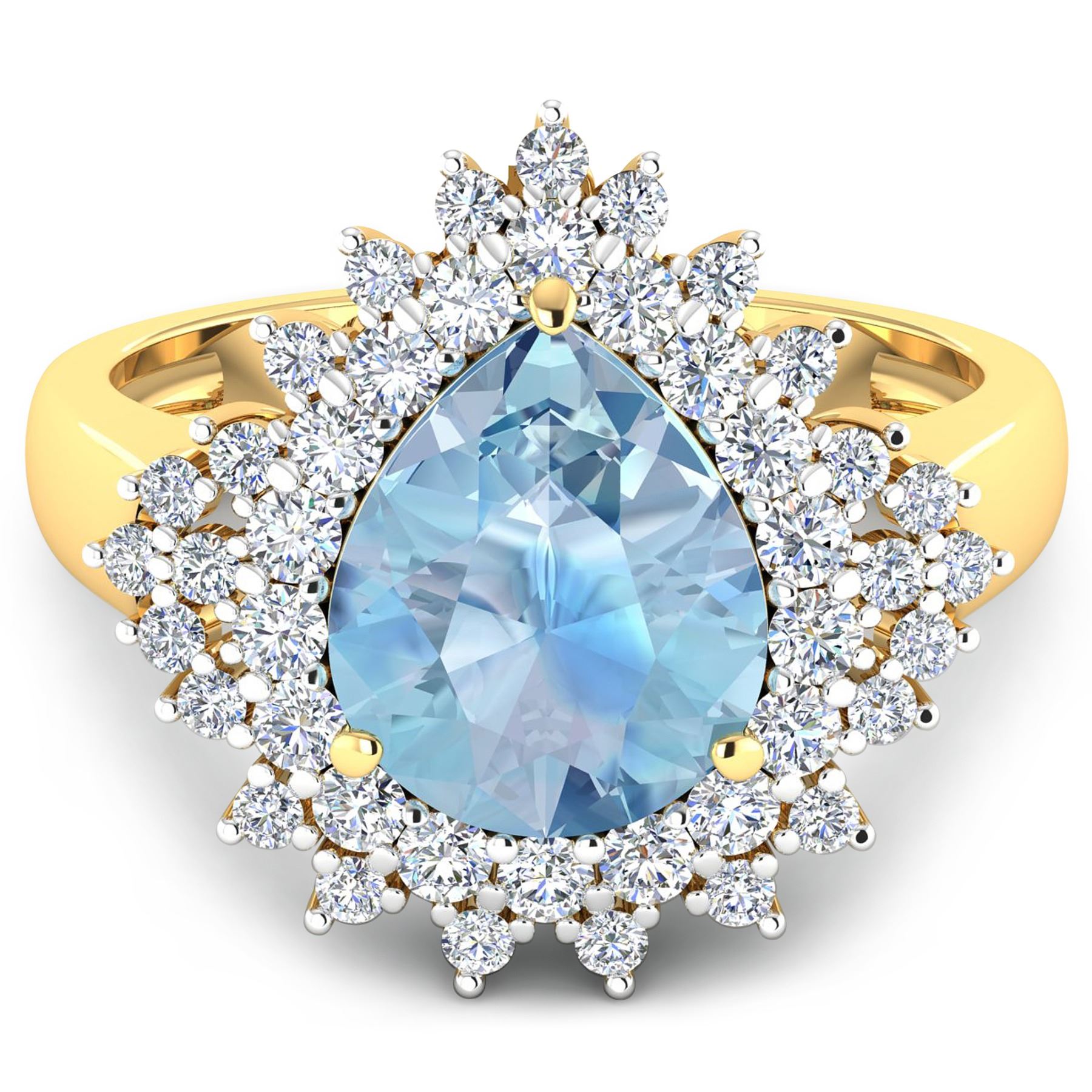 Aquamarine (AA+) Pears 11x9mm - 1Pc + White Diamond F/C Round 2.00mm - 18Pcs + White Diamond F/C Round 1.50mm - 25Pcs ( White Pan Rhodium ) ( Diamond Quality : SI-2/HI ) Total weight of gemstone is 2.3cts. Total Diamond weight is 0.89cts. Total weight of this ring is 4.65 grams. Ring size 7.