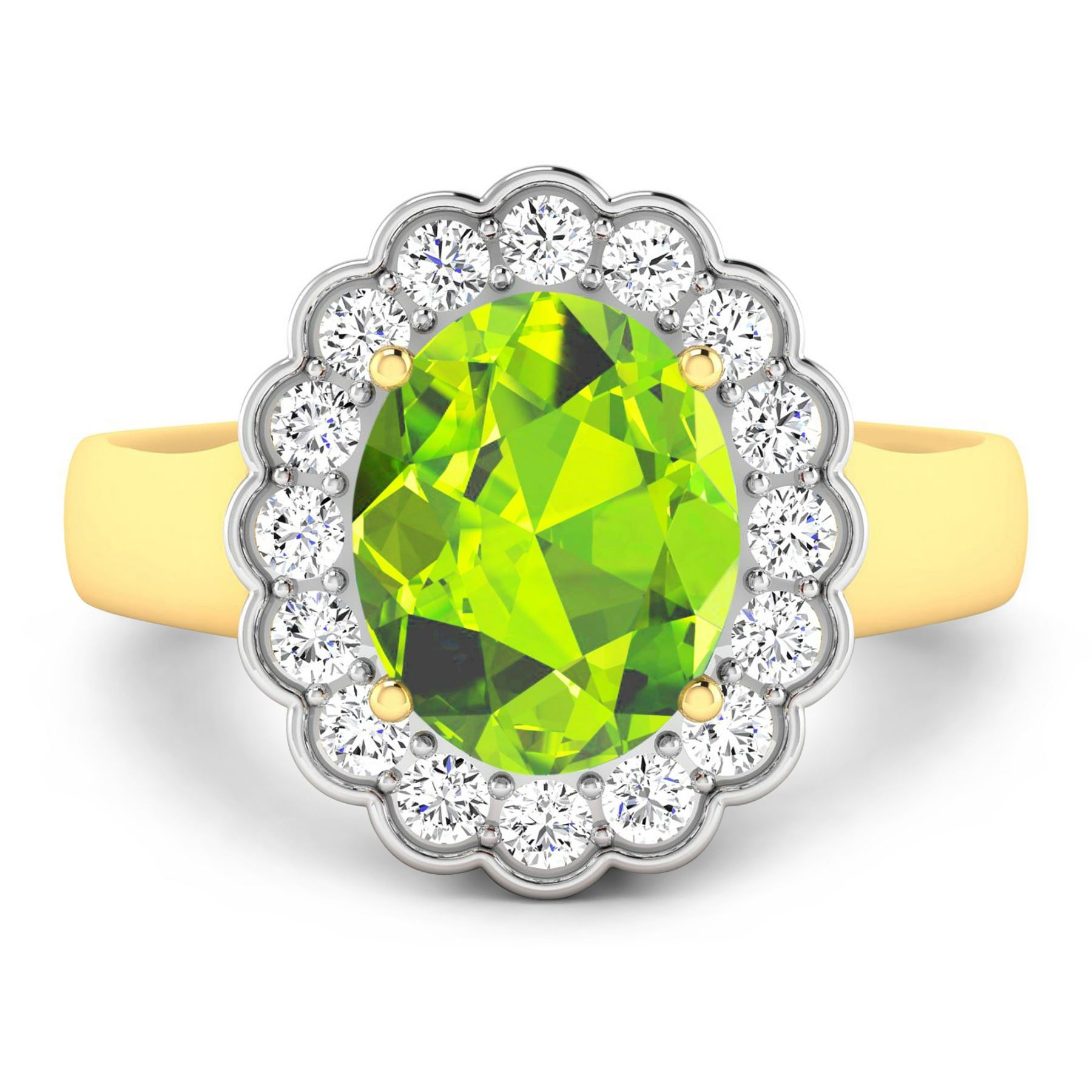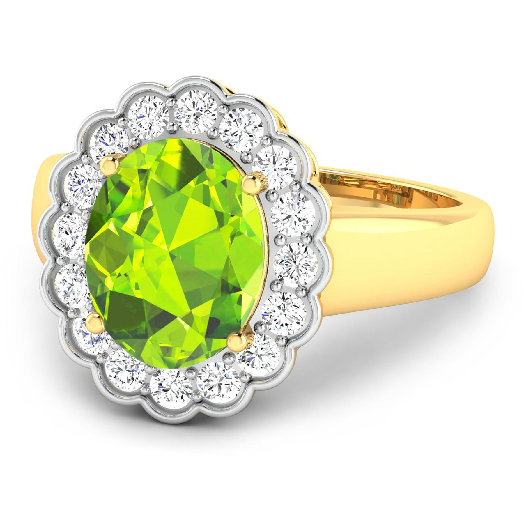 Peridot Oval 10x8mm - 1Pc + White Diamond F/C Round 2.00mm - 16Pcs ( White Pan Rhodium ) ( SI-2/HI ) Total weight of gemstone is 2.3cts. Total Diamond weight is 0.48cts. Total weight of this ring is 4.18 grams. Ring size 7.