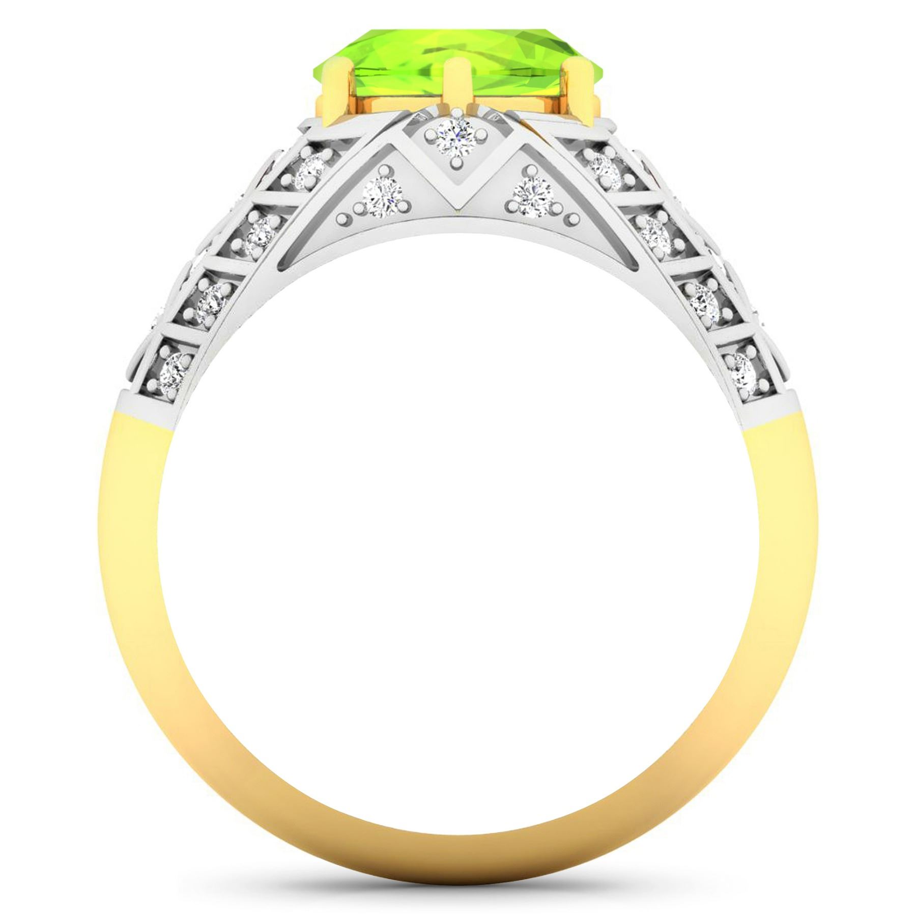 Peridot Oval 10x8mm - 1Pc + White Diamond F/C Round 1.80mm - 4Pcs + White Diamond F/C Round 1.50mm - 8Pcs + White Diamond F/C Round 1.30mm - 16Pcs + White Diamond F/C Round 1.20mm - 6Pcs ( White Pan Rhodium ) ( SI-2/HI ) Total weight of gemstone is 2.3cts. Total Diamond weight is 0.42cts. Total weight of this ring is 4.61 grams. Ring size 7.