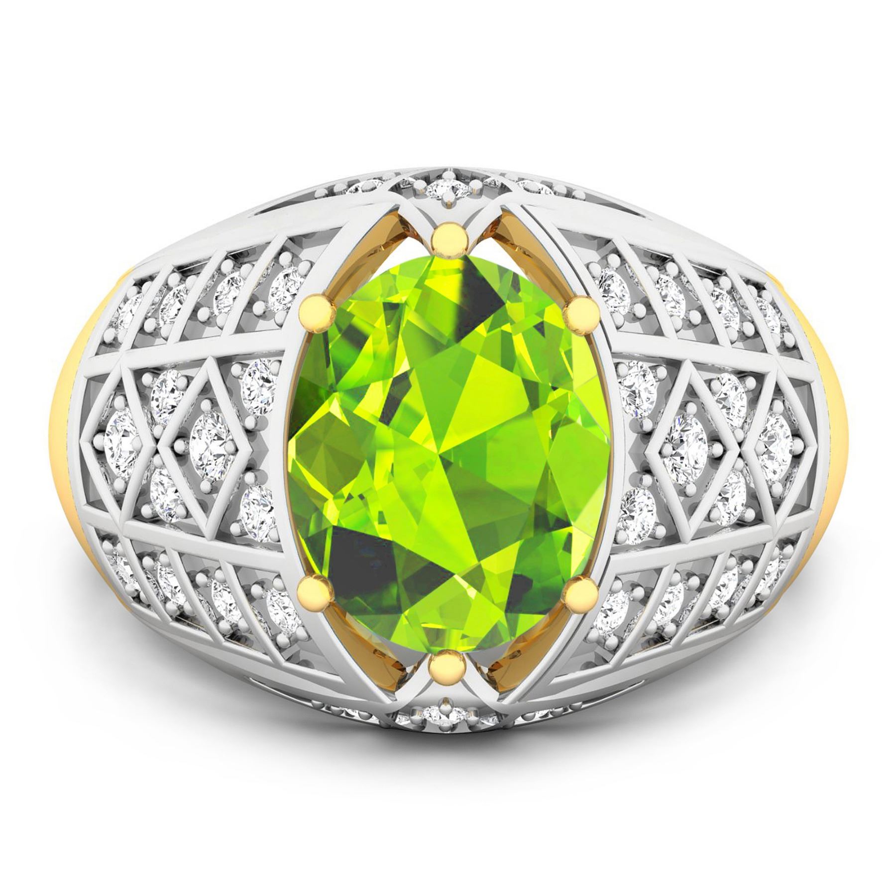 Peridot Oval 10x8mm - 1Pc + White Diamond F/C Round 1.80mm - 4Pcs + White Diamond F/C Round 1.50mm - 8Pcs + White Diamond F/C Round 1.30mm - 16Pcs + White Diamond F/C Round 1.20mm - 6Pcs ( White Pan Rhodium ) ( SI-2/HI ) Total weight of gemstone is 2.3cts. Total Diamond weight is 0.42cts. Total weight of this ring is 4.61 grams. Ring size 7.