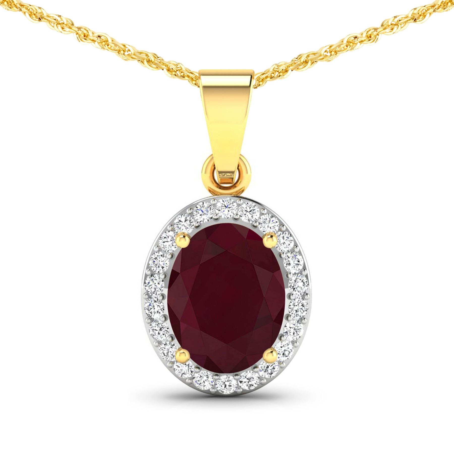 Ruby (AA) Oval 9x7mm - 1Pc + White Diamond F/C Round 1.30mm - 22Pcs ( White Pan Rhodium ) (I1-I2/I color) Total weight of gemstone is 2.3cts. Total Diamond weight is 0.22cts. Total weight of this pendant is 1.8 grams.