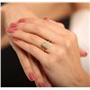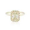 One electronically tested 14KT yellow gold ladies cast & assembled diamond unity ring with a bright polish finish. Condition is new, good workmanship. The featured diamond is set within a diamond bezel, completed by a one and one-half millimeter wide band. Identified with markings of "14K". Containing: One prong set radiant shaped cut diamond, measuring 8.70 x 6.65 x 4.30mm (depth est.), 10.00% GTCF approximate weight of 2.22ct. Diamond Grading Report attached. Graded in the setting. Clarity SI-2 . Color Very Light Yellow. Depth 64.%. Table 67.7%. Eighteen prong set round brilliant cut diamonds, measuring 1.50 - 1.40 x 0.87mm (depth est.) approximate total weight of 18 stones = 0.19ct. Graded in the setting. Clarity SI-1 to I-1. Color I-L. Total weight of Diamonds 2.41ct. Total weight of Ring 2.68m. AIG Appraised at $24,130.00.