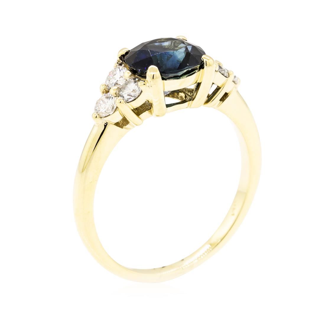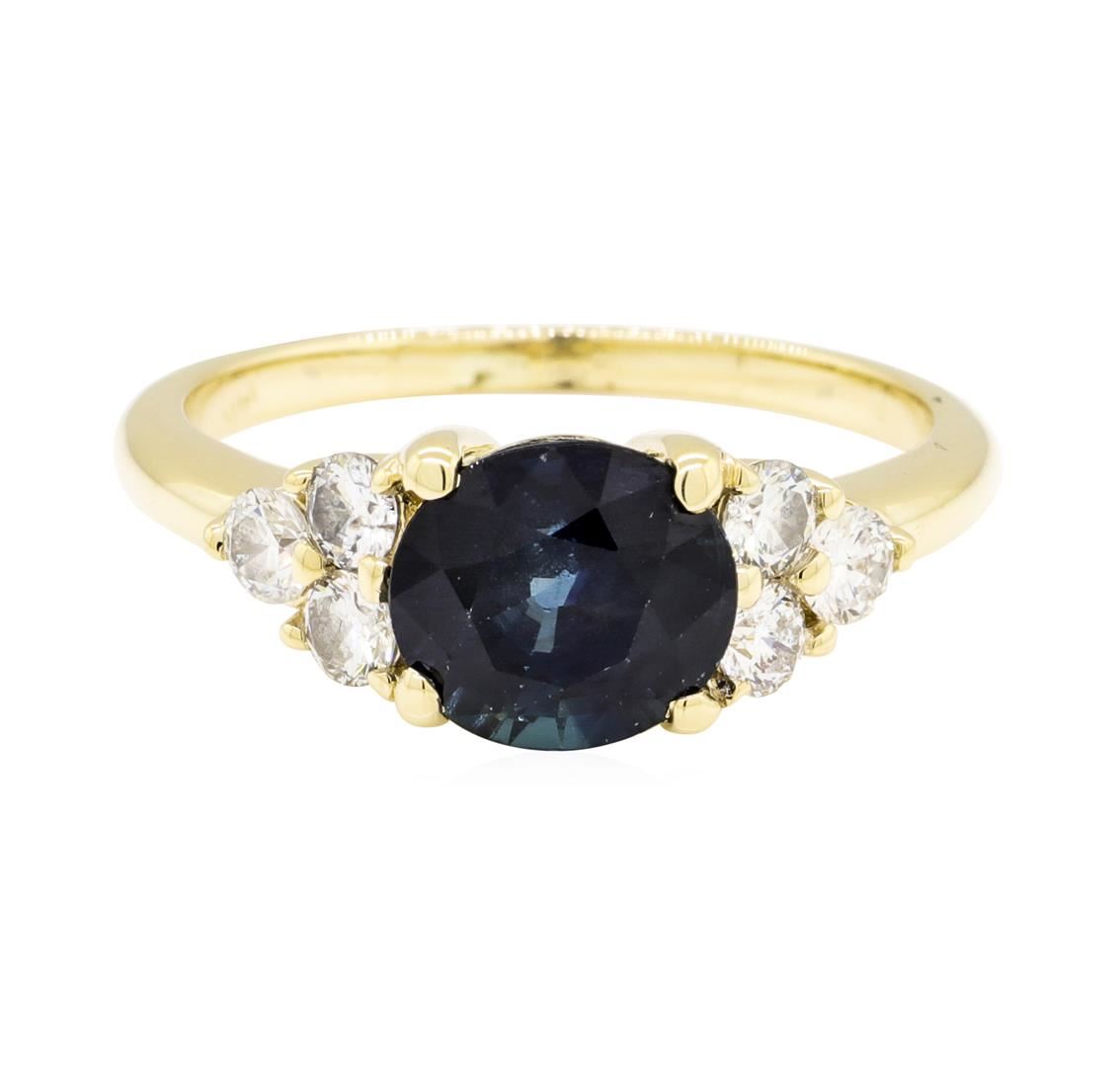 One ring featuring: 14KT yellow gold weighing 4.1 grams containing one sapphire weighing 2.48ct and diamonds weighing 0.60ctw. The ring is a size 8.