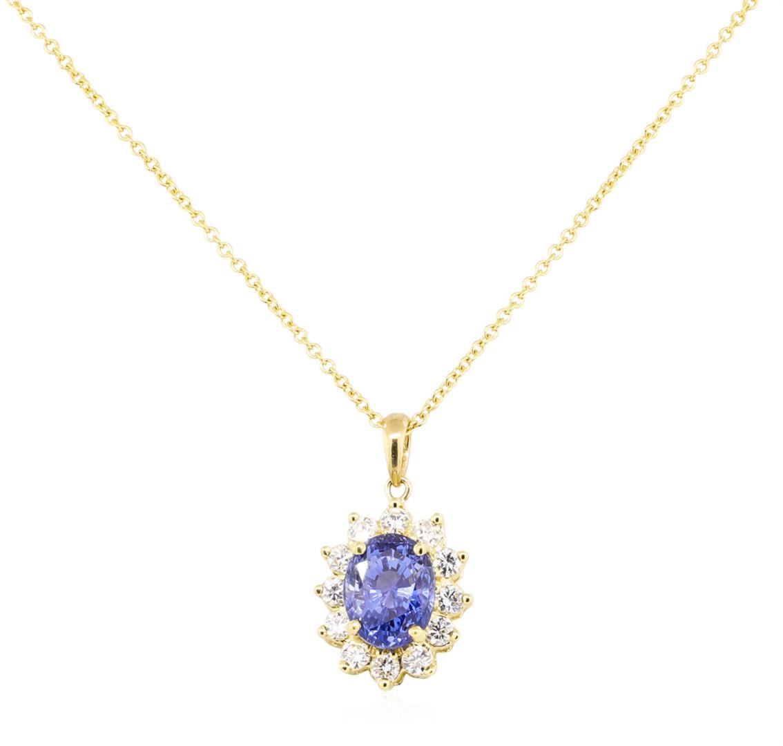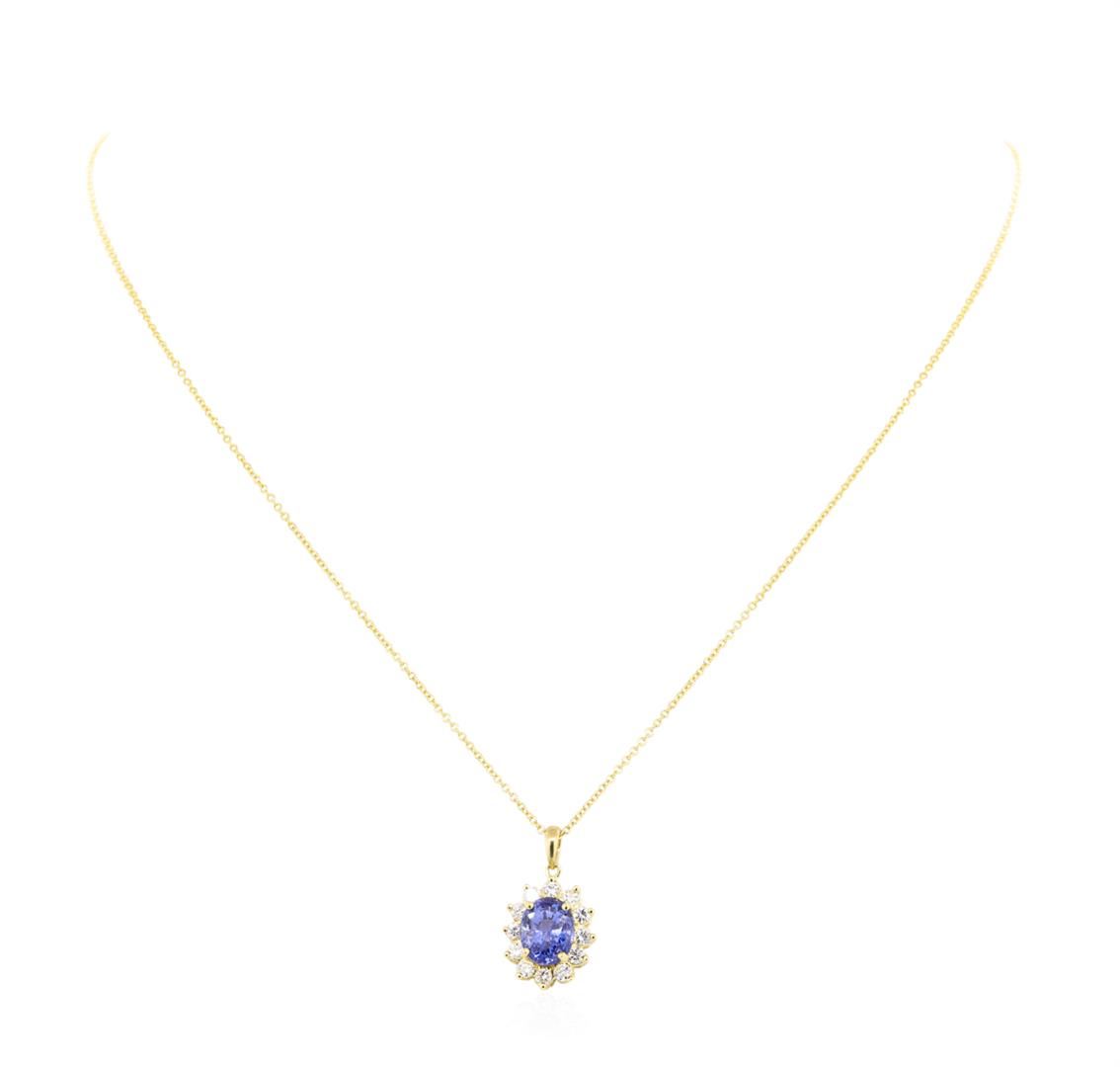14KT Yellow Gold 2.48 ctw Tanzanite and Diamond Pendant with Chain