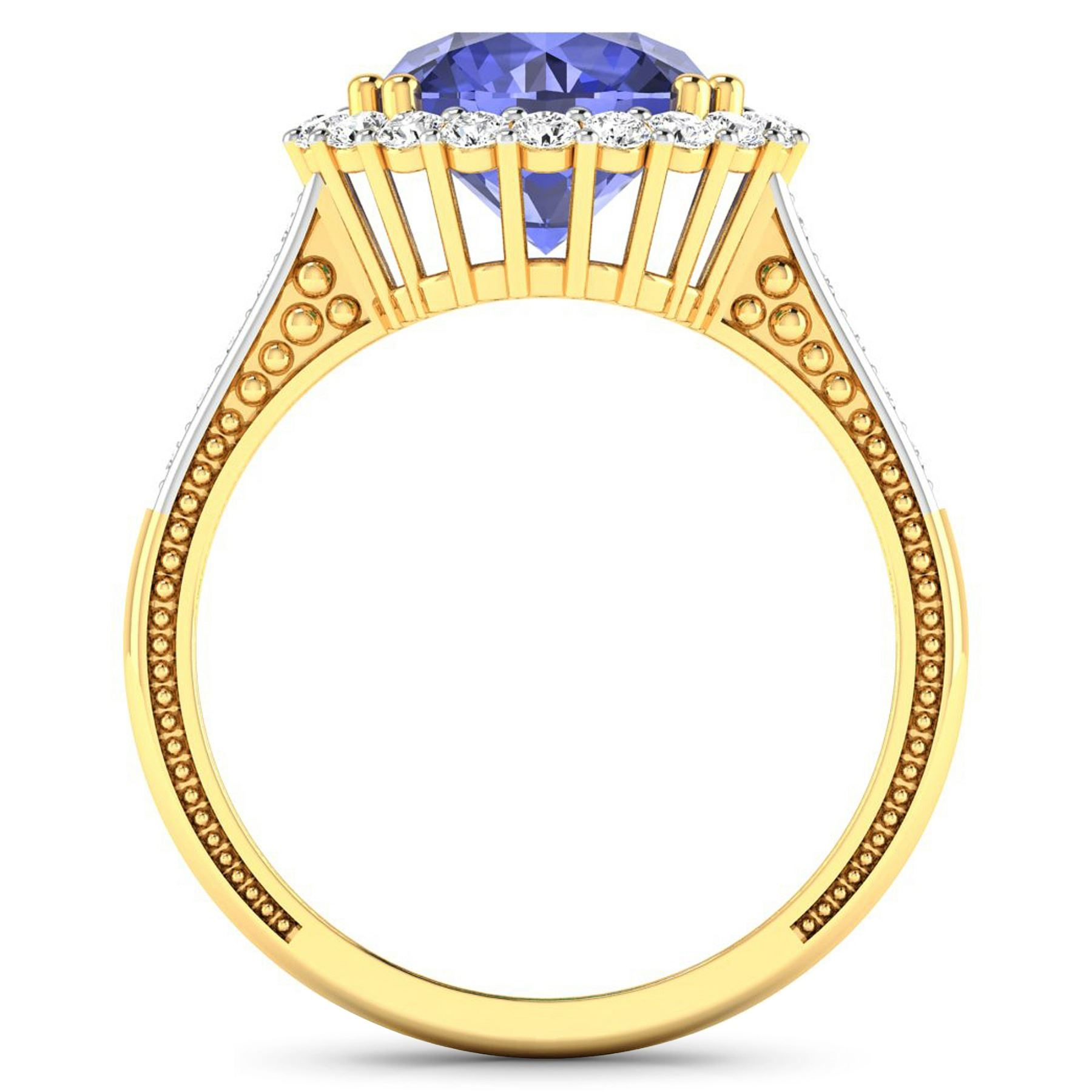 Tanzanite (AA+) Round 9.00mm - 1Pc + White Diamond F/C Round 1.90mm - 4Pcs + White Diamond F/C Round 1.60mm - 16Pcs + White Diamond F/C Round 1.40mm - 10Pcs ( White Pan Rhodium ) ( SI-2/HI ) Total weight of gemstone is 2.57cts. Total Diamond weight is 0.54cts. Total weight of this ring is 4.1 grams. Ring size 7.