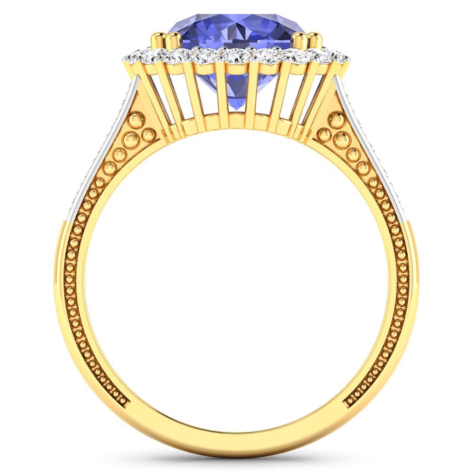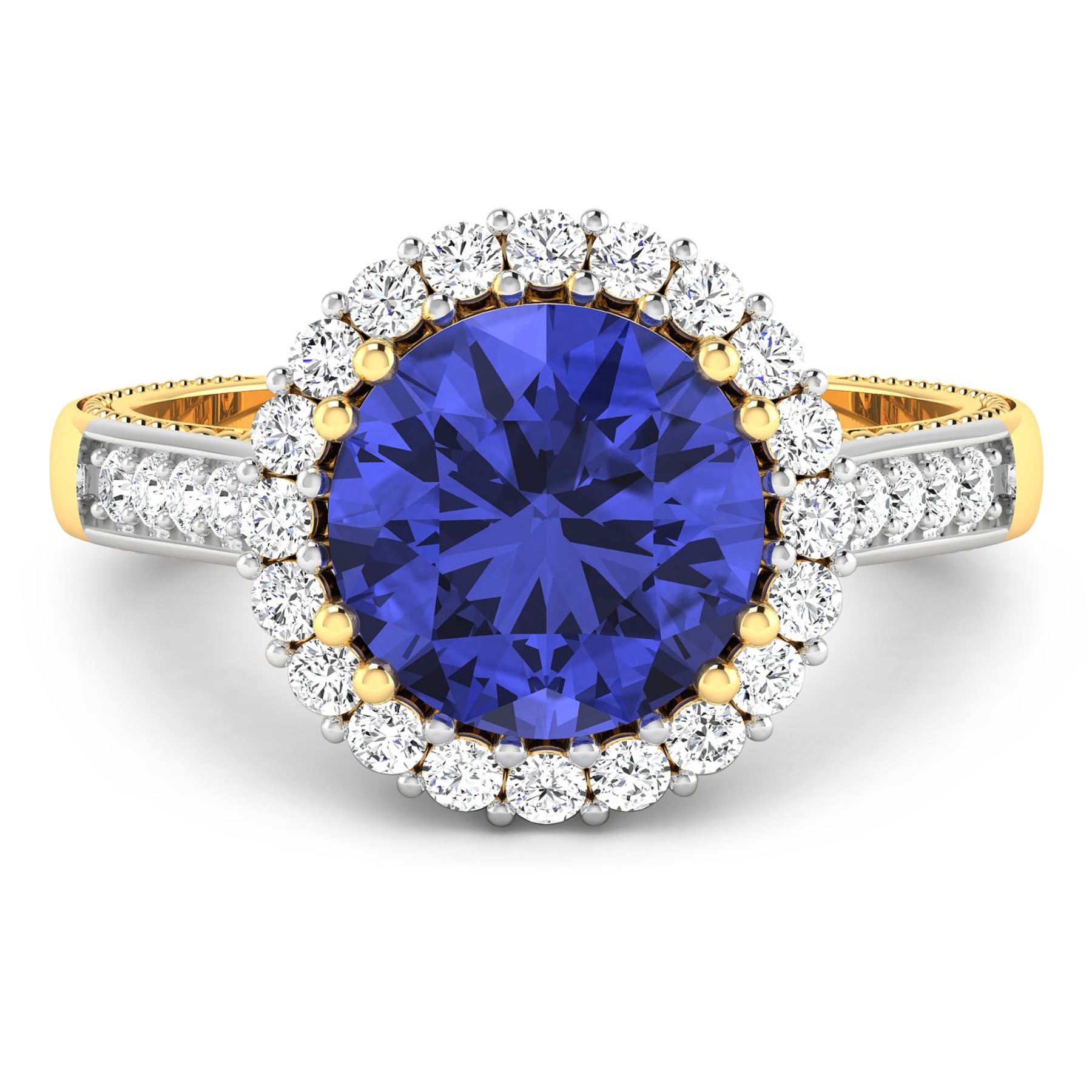 Tanzanite (AA+) Round 9.00mm - 1Pc + White Diamond F/C Round 1.90mm - 4Pcs + White Diamond F/C Round 1.60mm - 16Pcs + White Diamond F/C Round 1.40mm - 10Pcs ( White Pan Rhodium ) ( SI-2/HI ) Total weight of gemstone is 2.57cts. Total Diamond weight is 0.54cts. Total weight of this ring is 4.1 grams. Ring size 7.