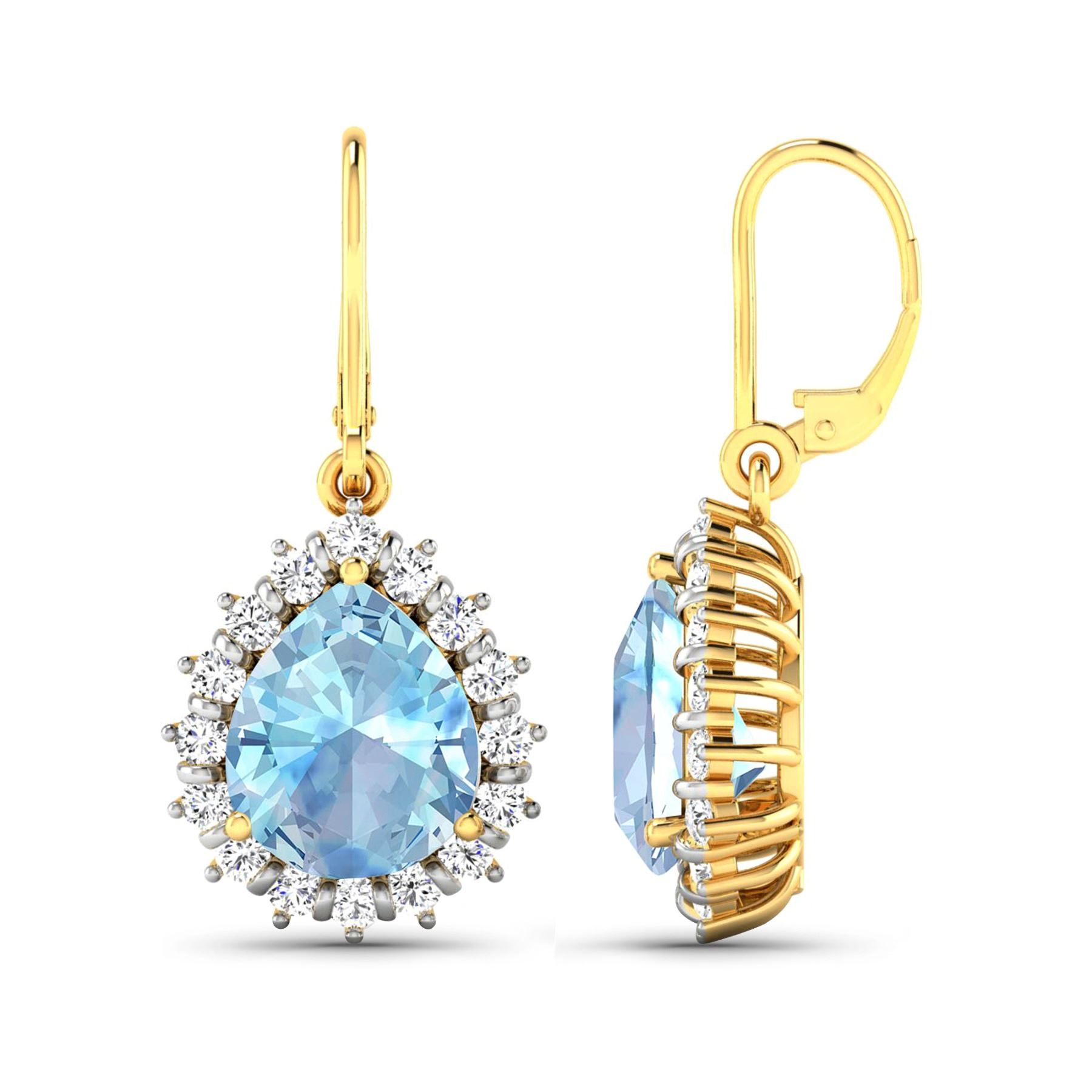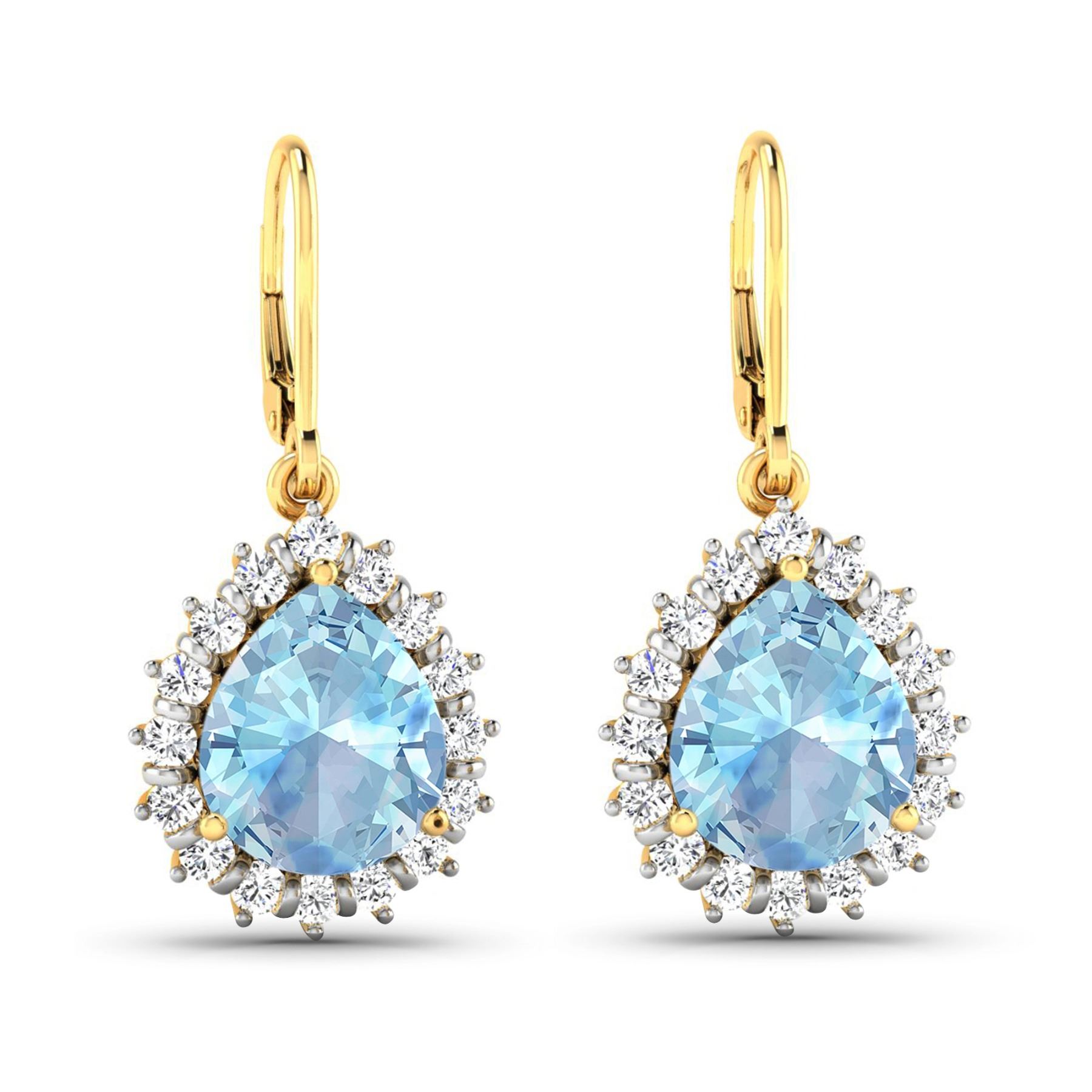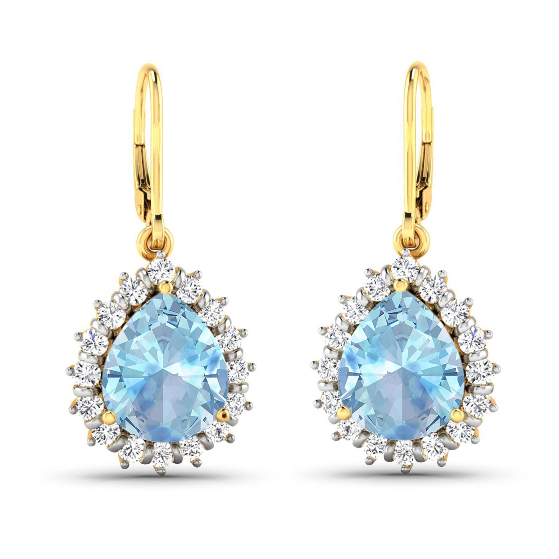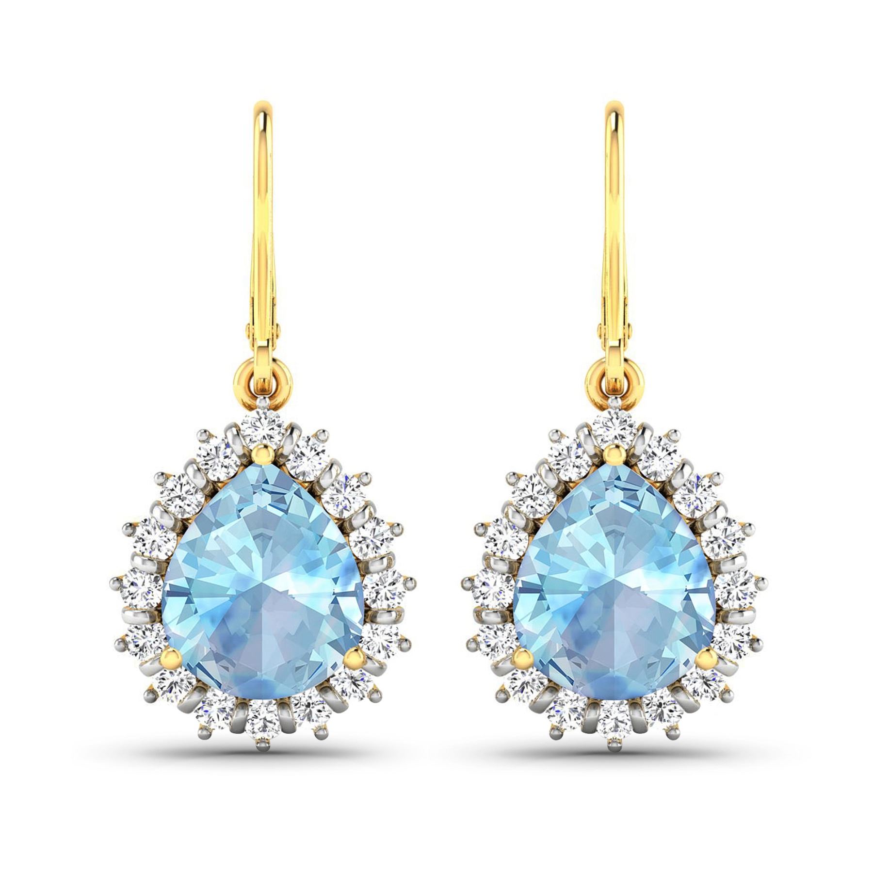 Aquamarine Pears 9x7mm - 2Pcs + White Diamond F/C Round 1.50mm - 32Pcs ( Diamond Quality : SI-2/HI ) Total weight of gemstones is 2.5cts. Total Diamond weight is 0.44cts. Total weight of these earrings are 4.28 grams.