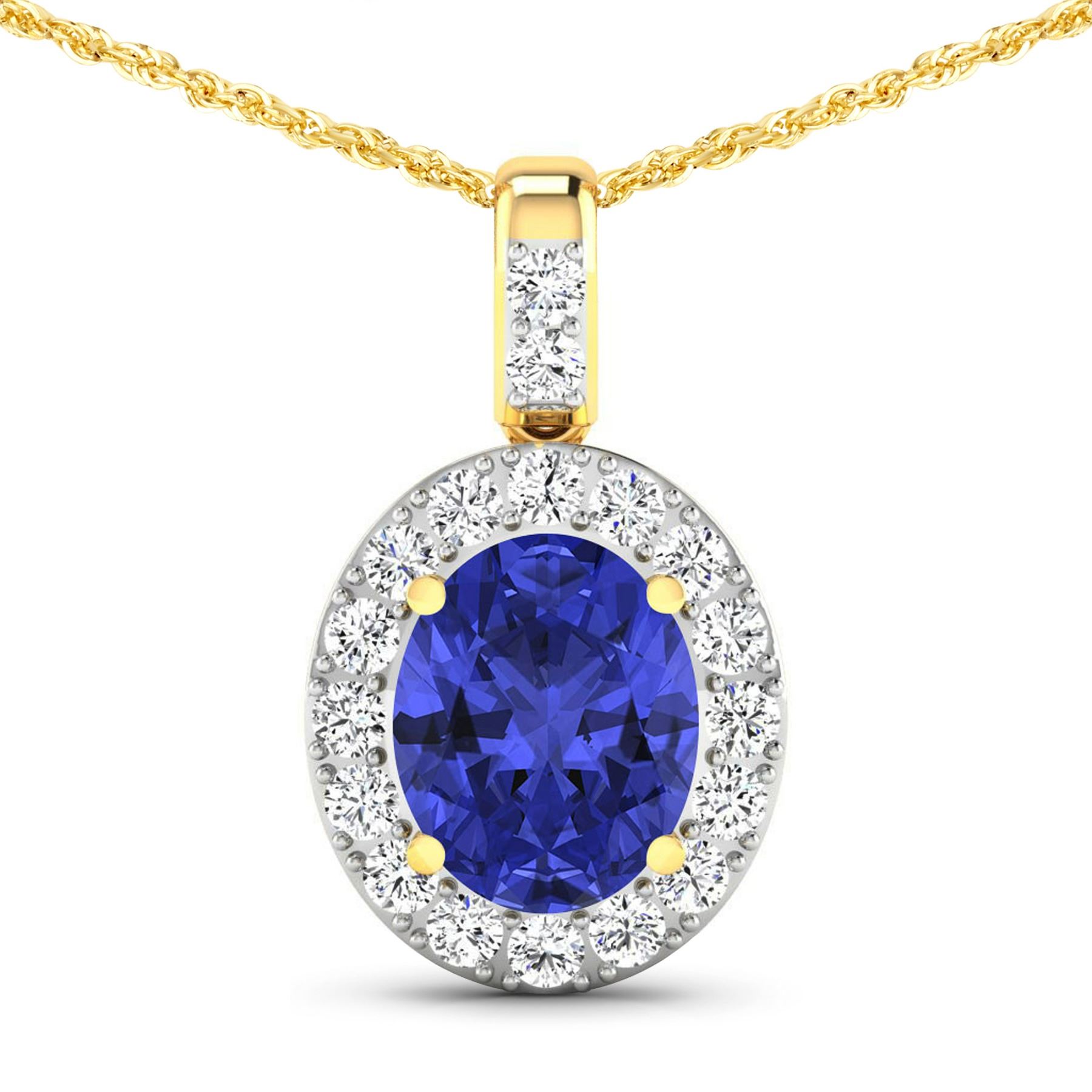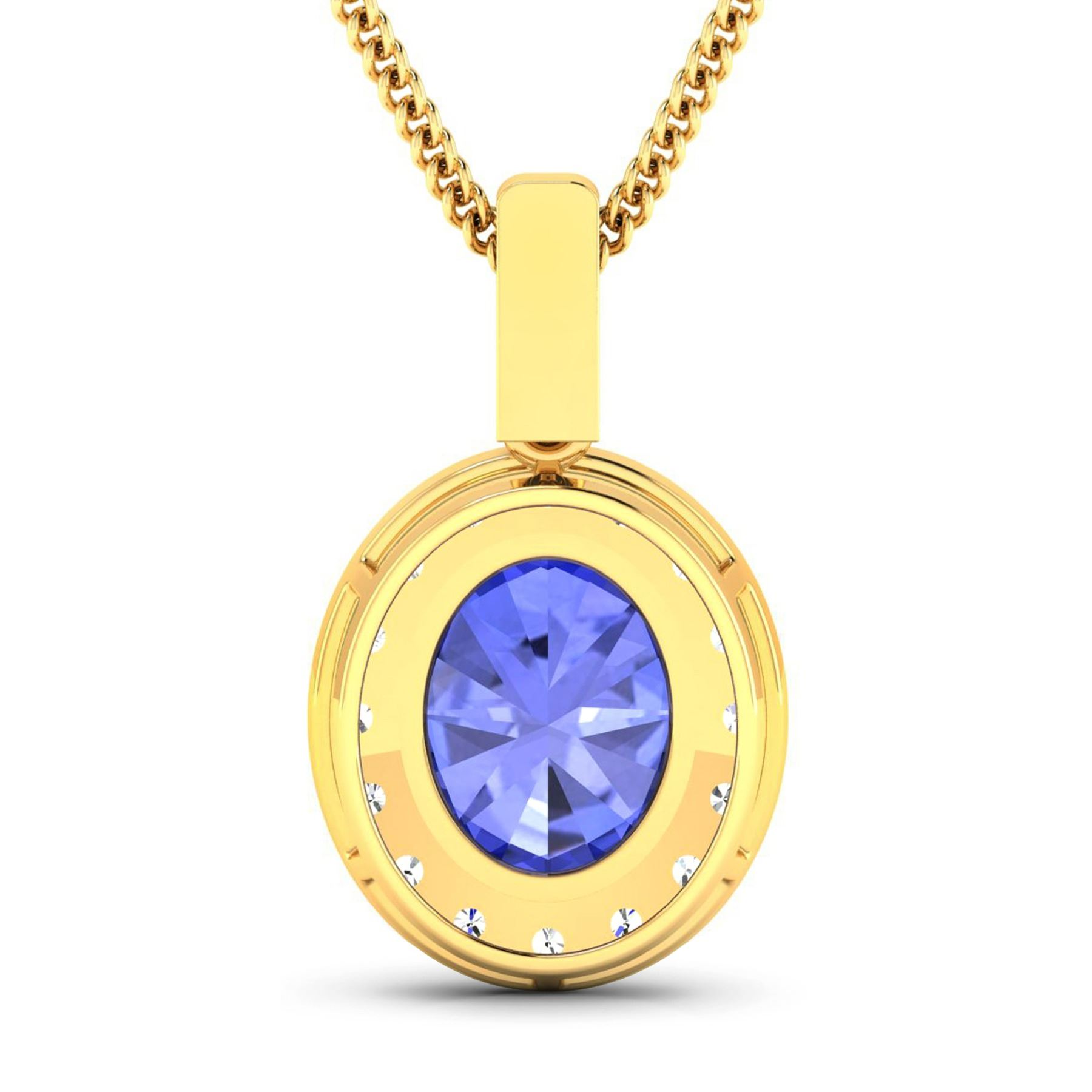 Tanzanite (AA+) Oval 10x8mm - 1Pc + White Diamond F/C Round 2.00mm - 18Pcs ( Diamond Quality : SI-2/HI ) Total weight of gemstone is 2.5cts. Total Diamond weight is 0.54cts. Total weight of this pendant is 2.47 grams.
