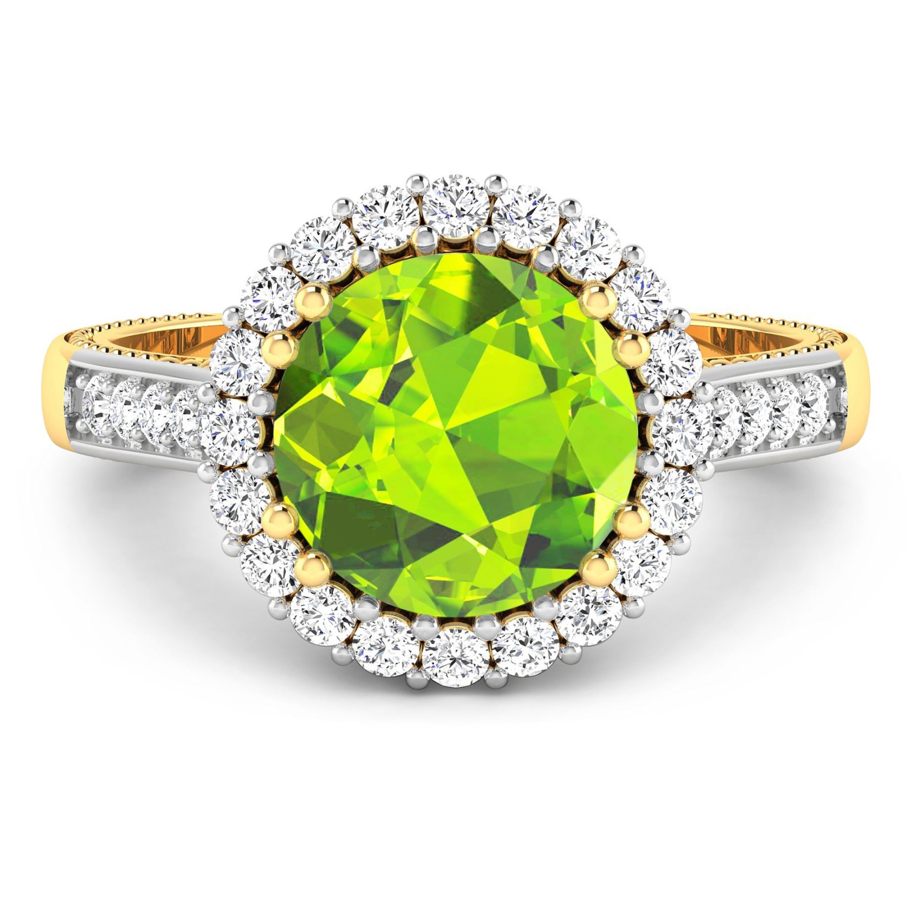 Peridot Round 9.00mm - 1Pc + White Diamond F/C Round 1.90mm - 4Pcs + White Diamond F/C Round 1.60mm - 16Pcs + White Diamond F/C Round 1.40mm - 10Pcs ( White Pan Rhodium ) ( SI-2/HI ) Total weight of gemstone is 2.6cts. Total Diamond weight is 0.54cts. Total weight of this ring is 4.11 grams. Ring size 7.