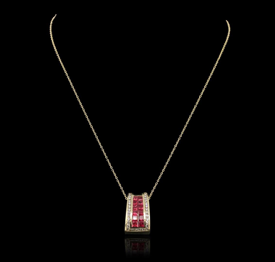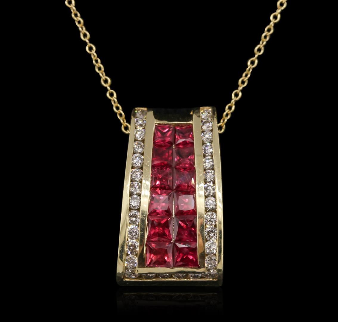 One pendant with chain featuring: 14KT yellow gold with a total weight of 9.60 grams, and diamonds with a total weight of 0.80ctw.