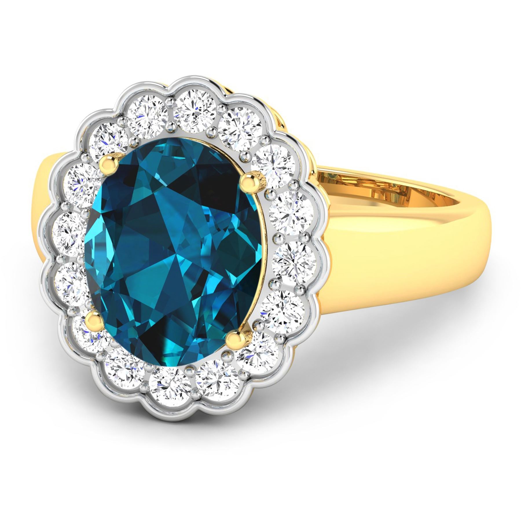 London Blue Topaz Oval 10x8mm - 1Pc + White Diamond F/C Round 2.00mm - 16Pcs ( White Pan Rhodium ) ( SI-2/HI ) Total weight of gemstone is 2.7cts. Total Diamond weight is 0.48cts. Total weight of this ring is 4.26 grams. Ring size 7.