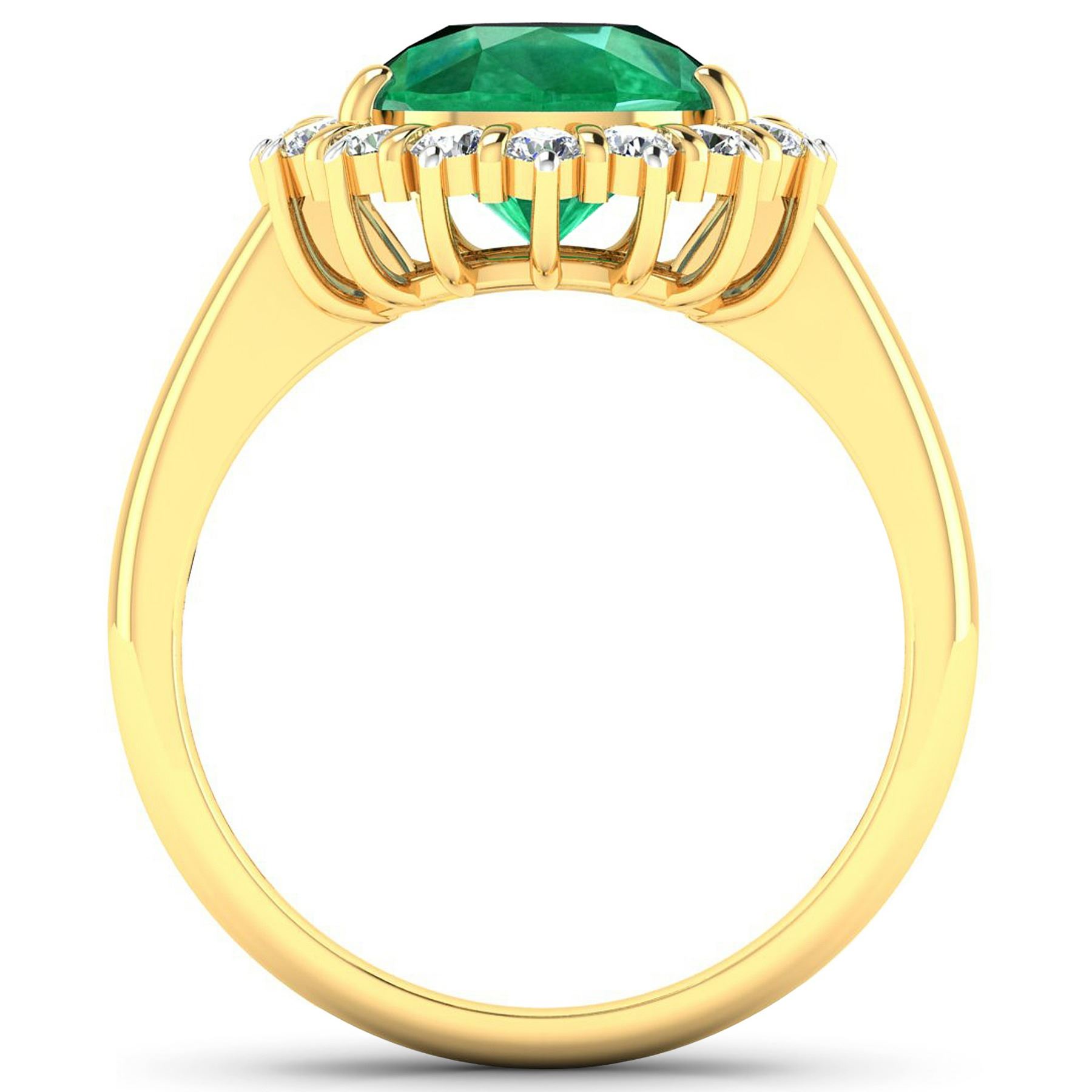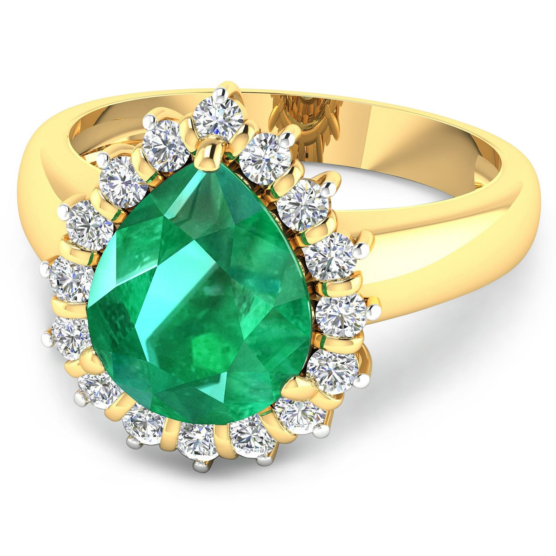 Zambian Emerald (AA) Pears 11x9mm - 1Pc + White Diamond F/C Round 2.00mm - 16Pcs ( White Pan Rhodium ) ( Diamond Quality : SI-2/HI ). Total weight of gemstone is 2.85cts. Total weight of Diamonds is 0.48cts. Total weight of this ring is 3.94 grams. Ring size 7.