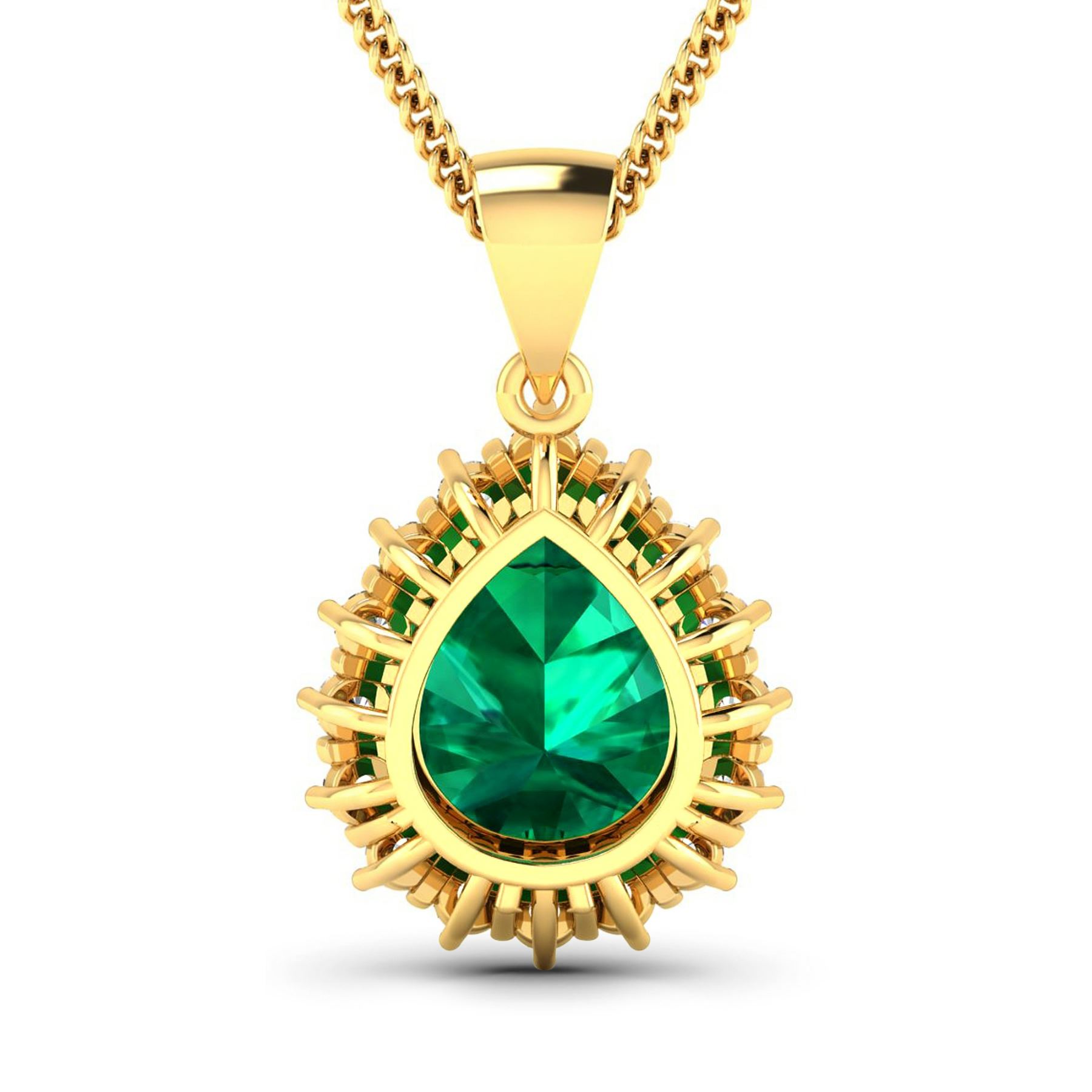 Zambian Emerald (AA) Pears 11x9mm - 1Pc + White Diamond F/C Round 2.00mm - 16Pcs ( Diamond Quality : SI-2/HI ) Total weight of gemstone is 2.85cts. Total Diamond weight is 0.48cts. Total weight of this pendant is 3.04 grams.