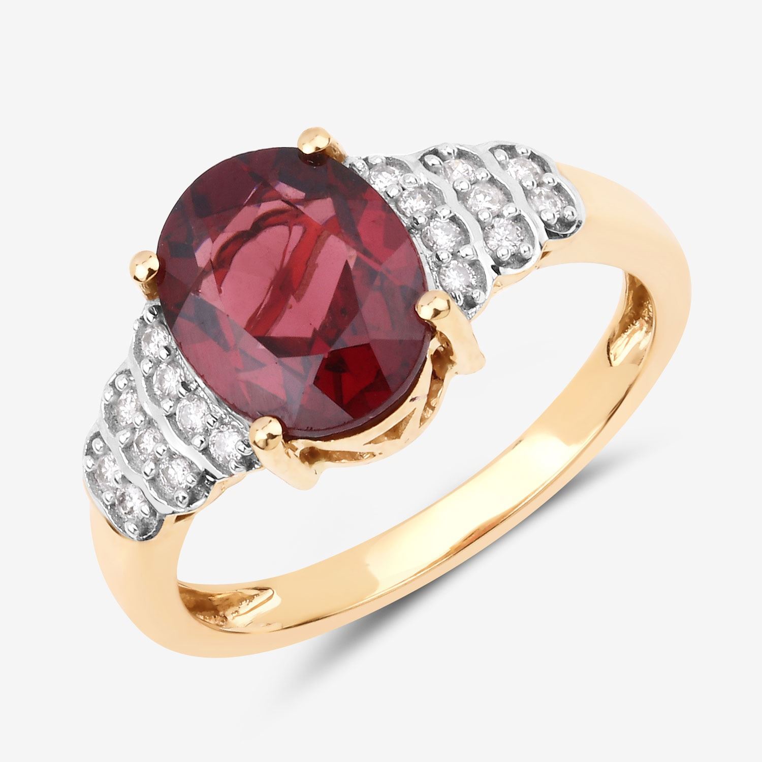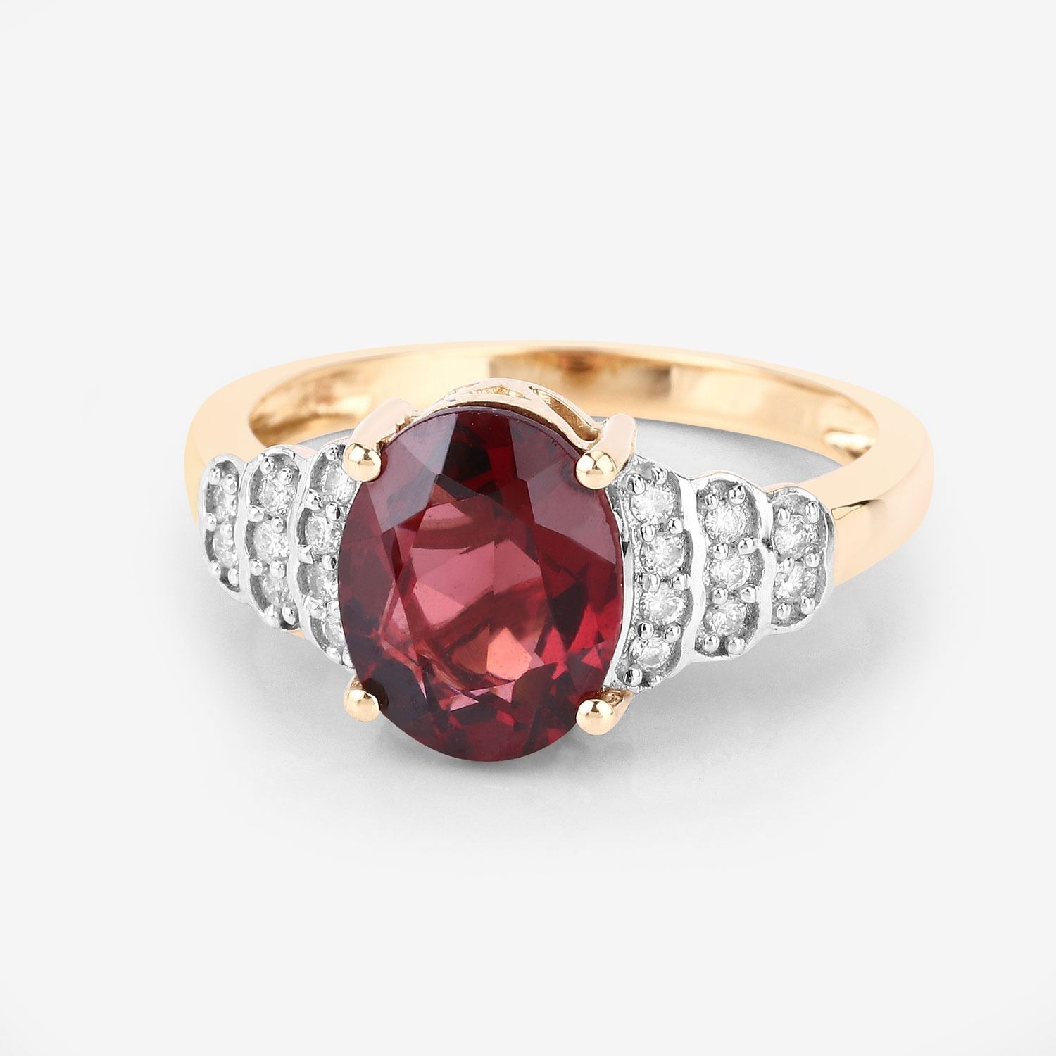 Rhodolite Garnet Oval/10x8mm - 1/2.73 ctw Prong Setting Natural Not Treated N + White Diamond Round/1.20mm - 18/0.14 ctw Natural Not Treated N H-I I1. Ring size 7. Total weight of 3.05 grams.