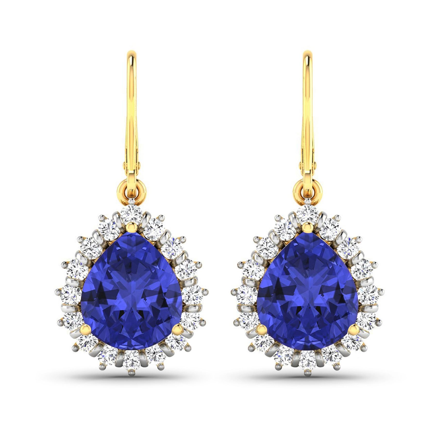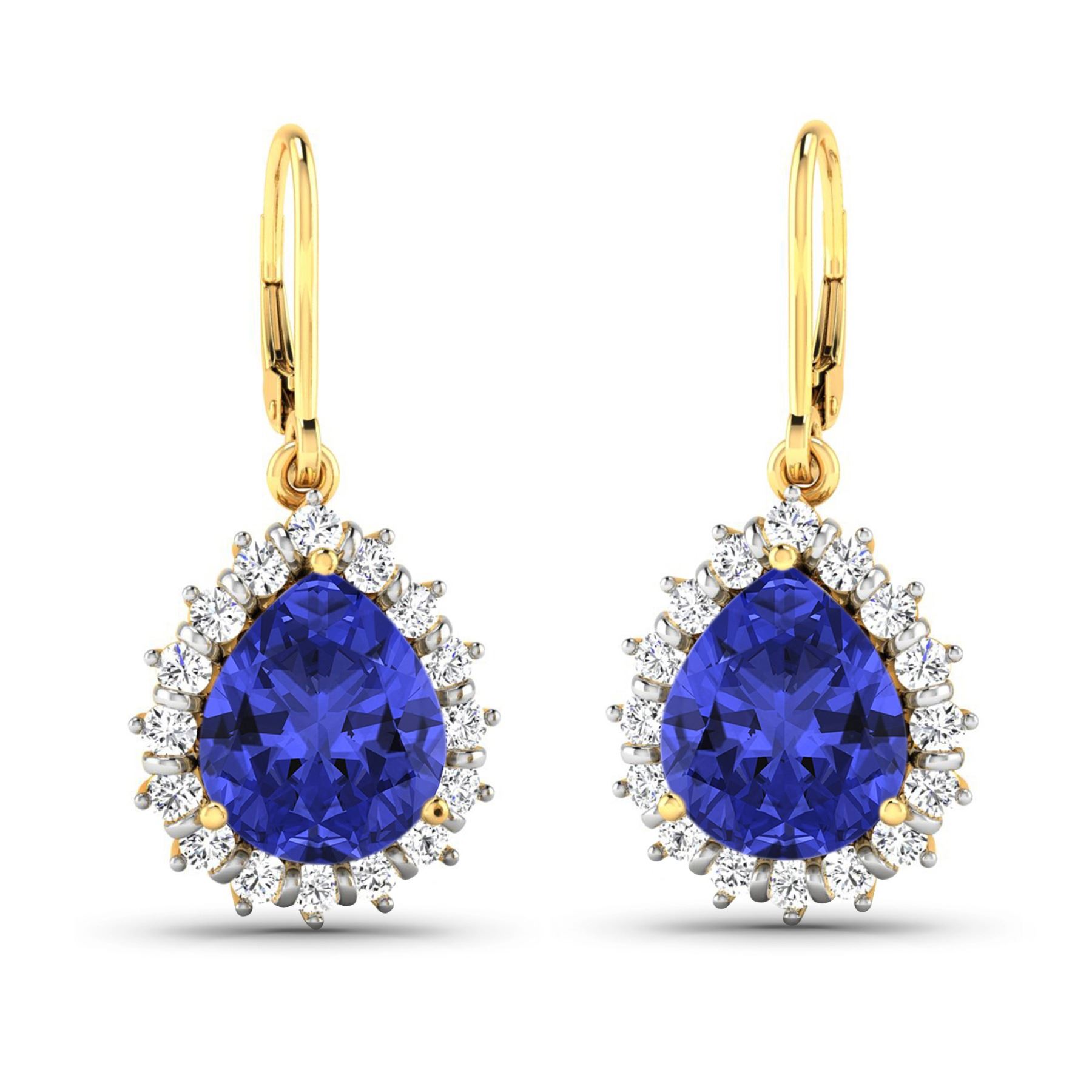 Tanzanite (AA+) Pears 9x7mm - 2Pcs + White Diamond F/C Round 1.50mm - 32Pcs ( Diamond Quality : SI-2/HI ) Total weight of gemstones is 2.88cts. Total Diamond weight is 0.44cts. Total weight of these earrings are 4.36 grams.
