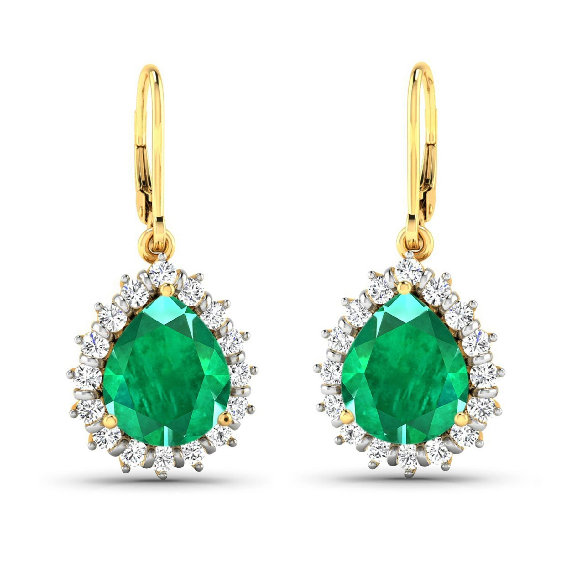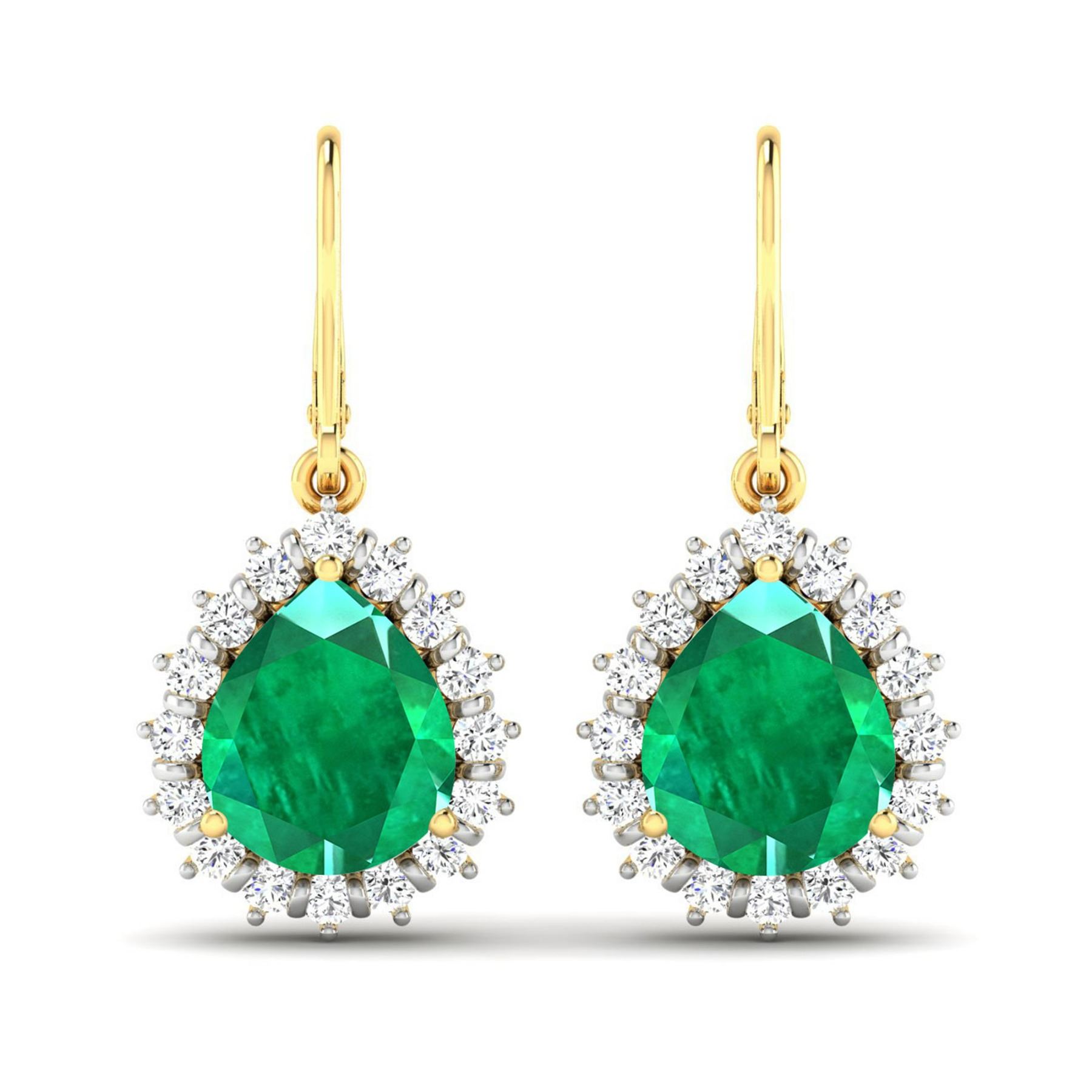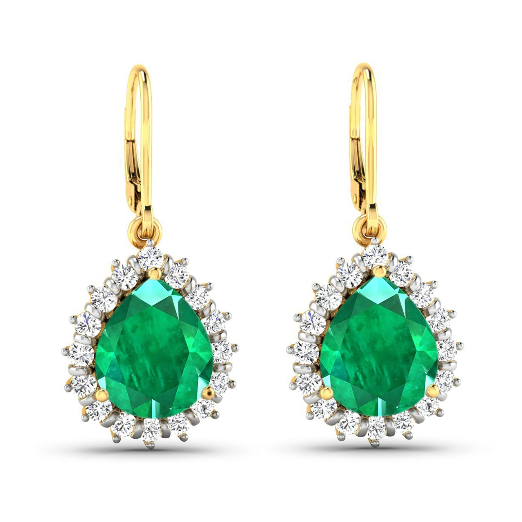 Zambian Emerald (AA) Pears 9x7mm - 2Pcs + White Diamond F/C Round 1.50mm - 32Pcs ( Diamond Quality : SI-2/HI ) Total weight of gemstones is 2.88cts. Total Diamond weight is 0.44cts. Total weight of these earrings are 4.36 grams.