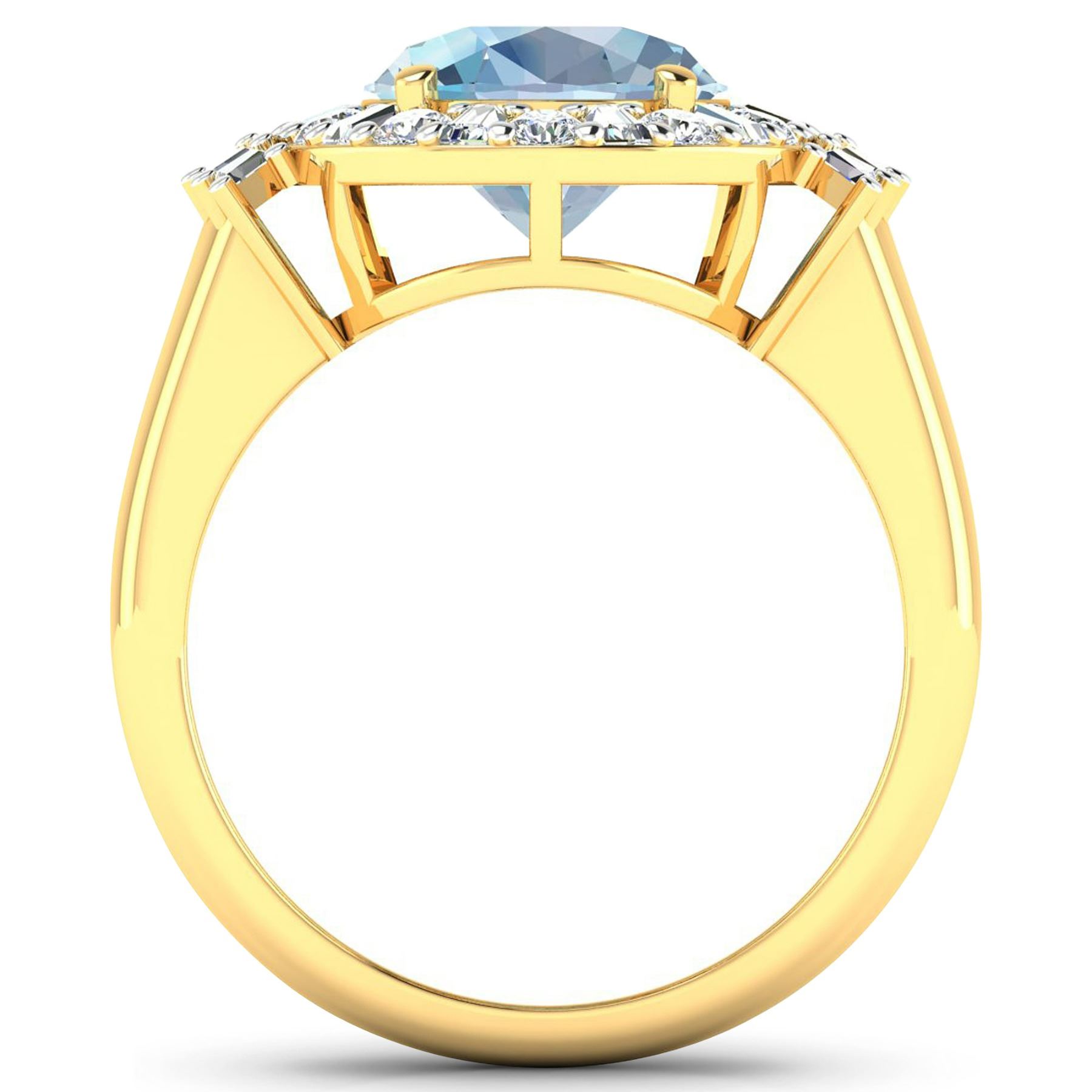 Aquamarine (AA+) Oval 11x9mm - 1Pc + White Diamond Tapper Baguette 2.00x1.50x1.10mm - 11Pcs + White Diamond Tapper Baguette 1.50x1.40x1.00mm - 10Pcs + White Diamond F/C Round 2.00mm - 11Pcs ( White Pan Rhodium ) ( Diamond Quality : SI-2/HI ). Total weight of gemstone is 2.9cts. Total weight of Diamonds is 0.83cts. Total weight of this ring is 4.41 grams. Ring size 7.
