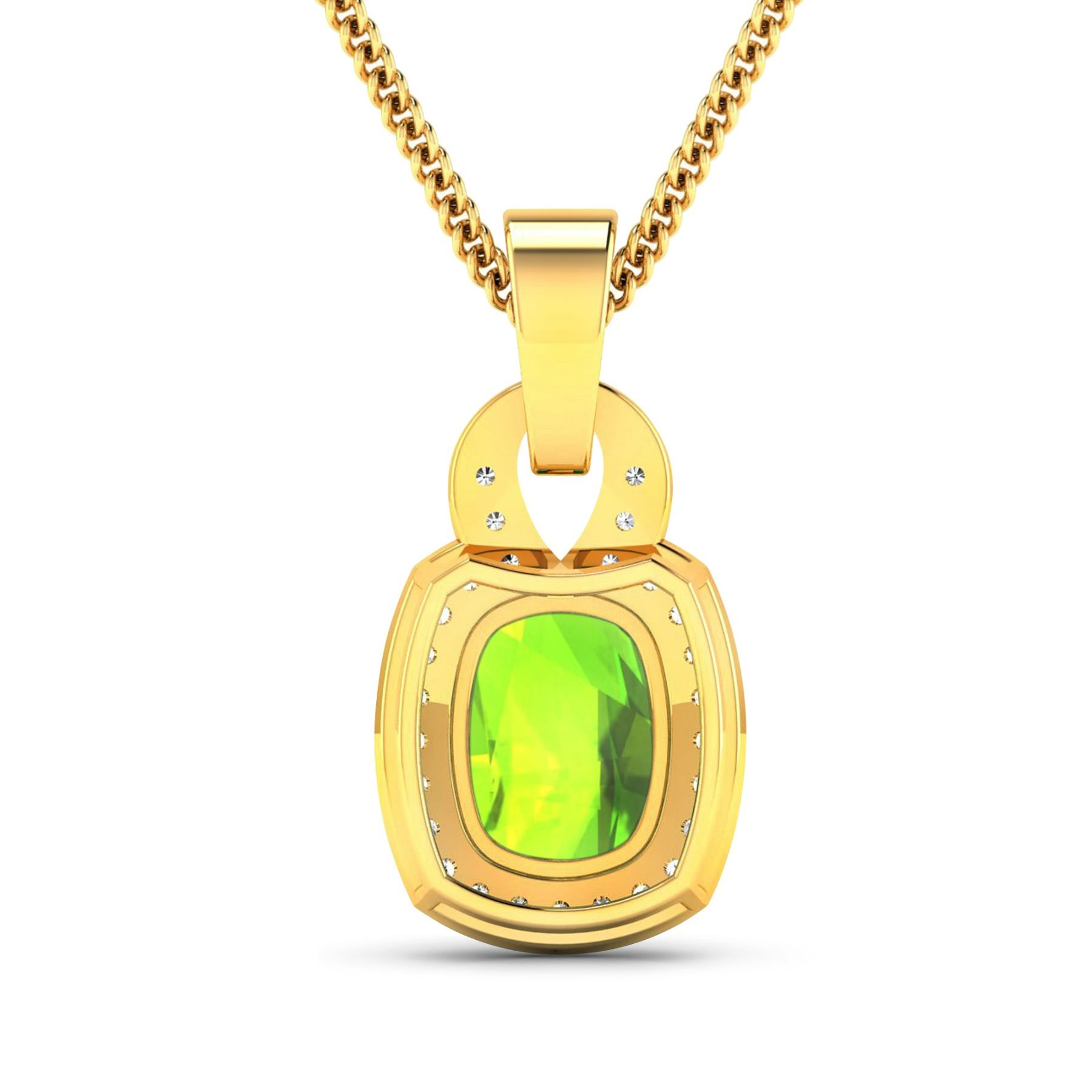 Peridot Cushion 9x7mm - 1Pc + White Diamond F/C Round 1.20mm - 31Pcs ( White Pan Rhodium ) ( SI2/HI color ) Total weight of gemstone is 2cts. Total Diamond weight is 0.25cts. Total weight of this pendant is 2.15 grams.