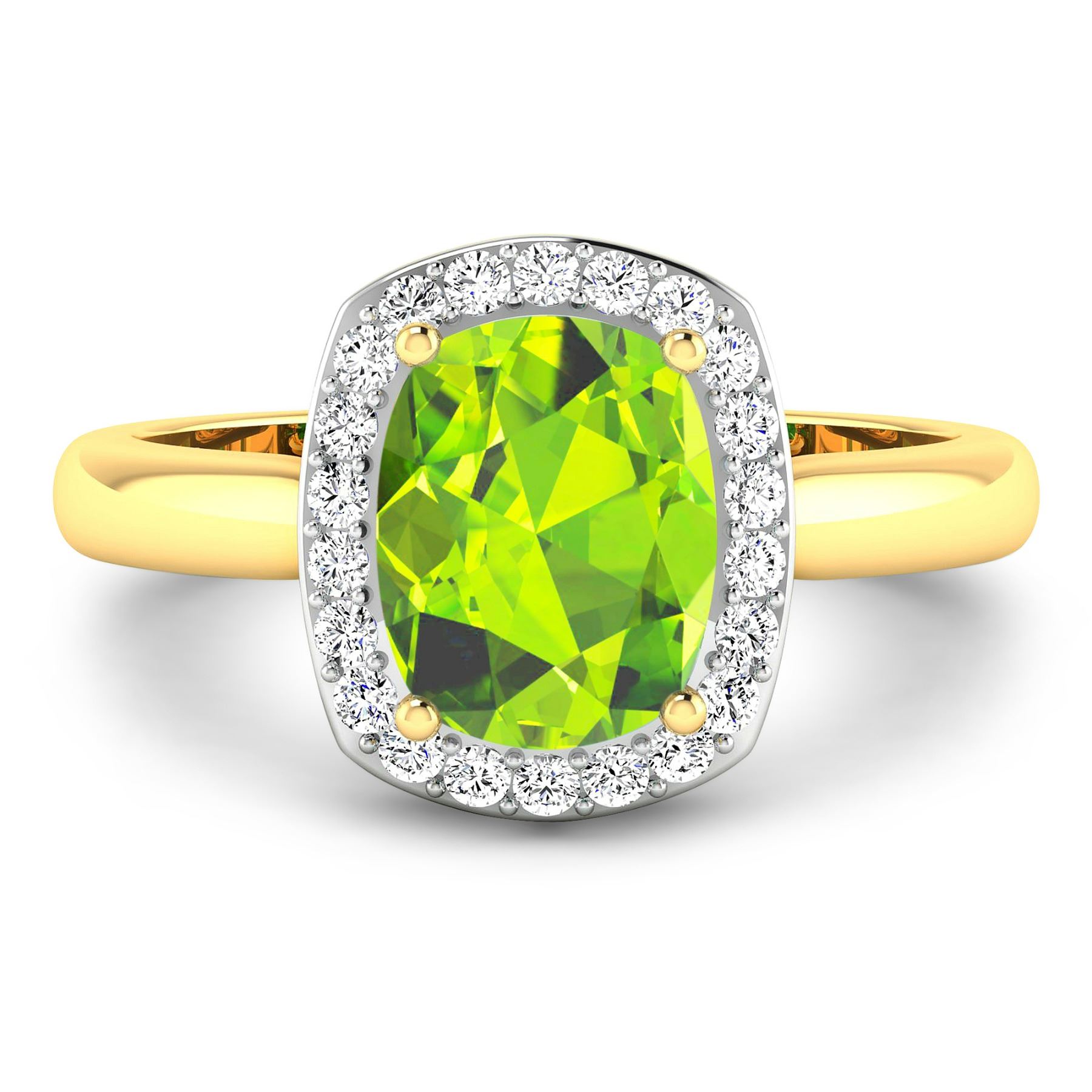 Peridot Cushion 9x7mm - 1Pc + White Diamond F/C Round 1.30mm - 22Pcs ( White Pan Rhodium ) ( SI2/HI color ) Total weight of gemstone is 2cts. Total Diamond weight is 0.22cts. Total weight of this ring is 3.02 grams. Ring size 7.