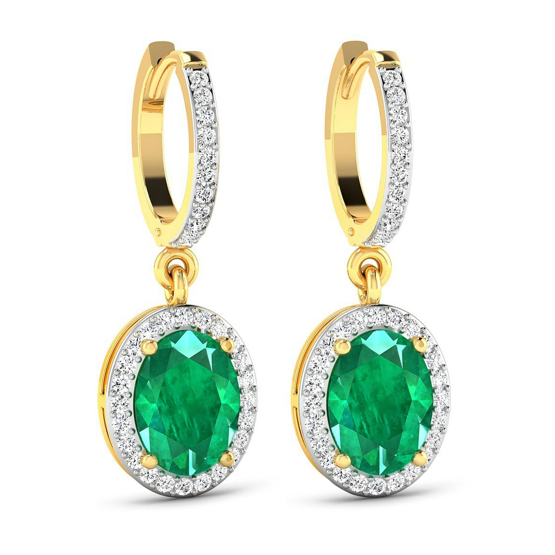 Zambian Emerald (AA) Oval 8x6mm - 2Pcs + White Diamond F/C Round 1.00mm - 70Pcs ( Clip On ) ( White Pan Rhodium ) ( I1-I2/I color ) Total weight of gemstones is 2cts. Total Diamond weight is 0.32cts. Total weight of these earrings are 3.24 grams.