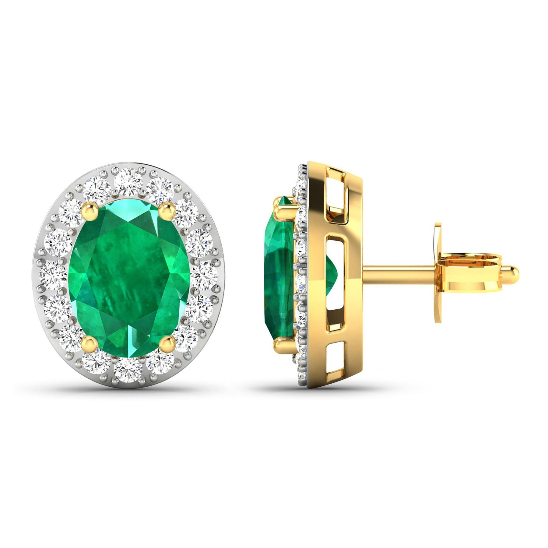 Zambian Emerald (AA) Oval 8x6mm - 2Pcs + White Diamond F/C Round 1.50mm - 32Pcs ( Diamond Quality : SI-2/HI ) ( Push Post ) Total weight of gemstones is 2cts. Total Diamond weight is 0.44cts. Total weight of these earrings are 2.62 grams.