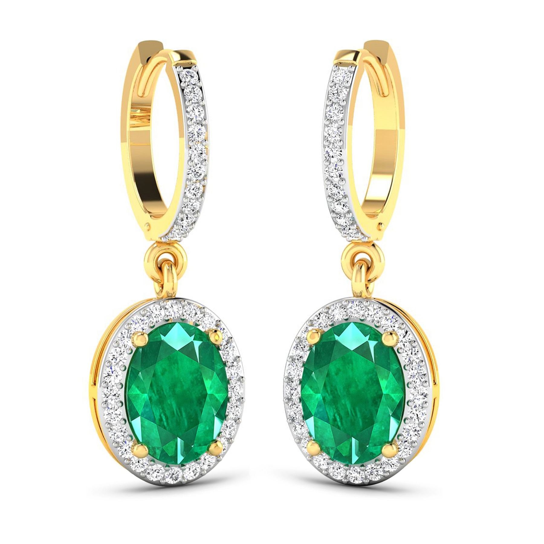 14KT Yellow Gold 2ctw Zambian Emerald and Diamond Earrings