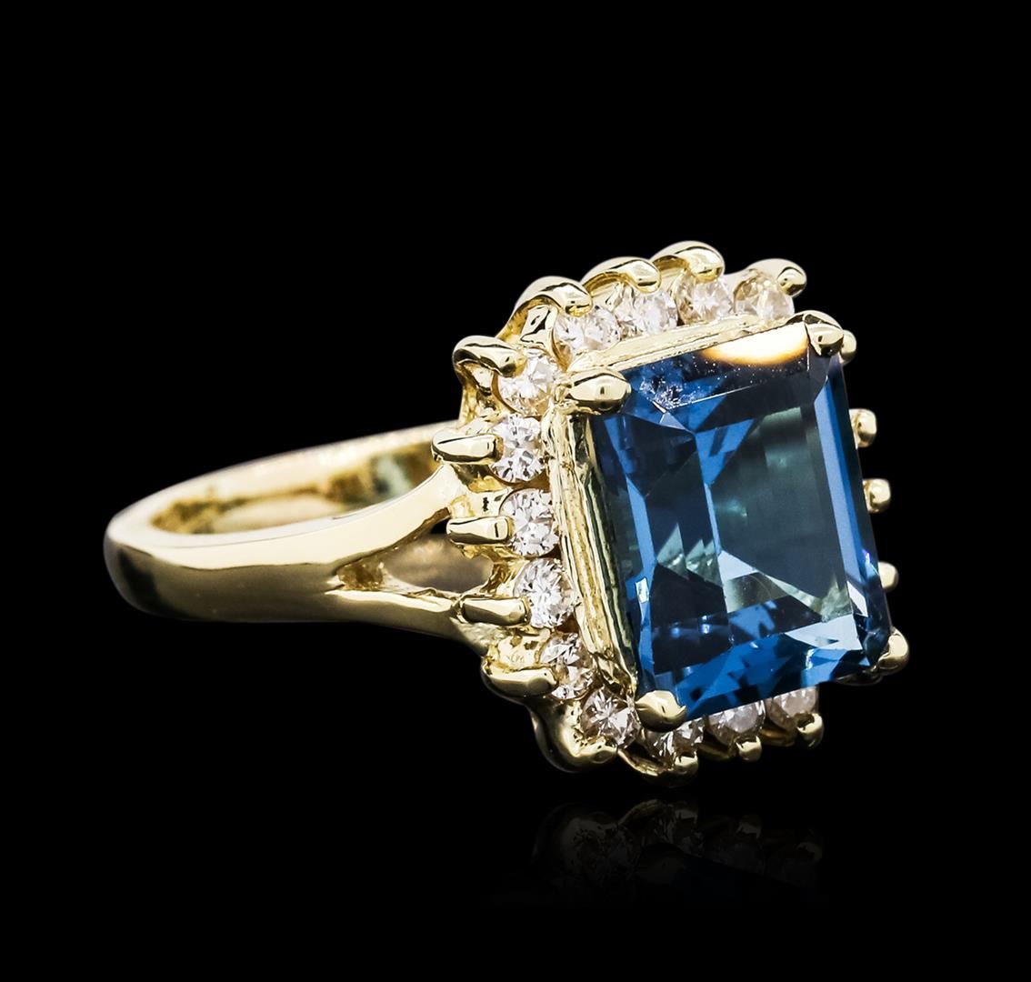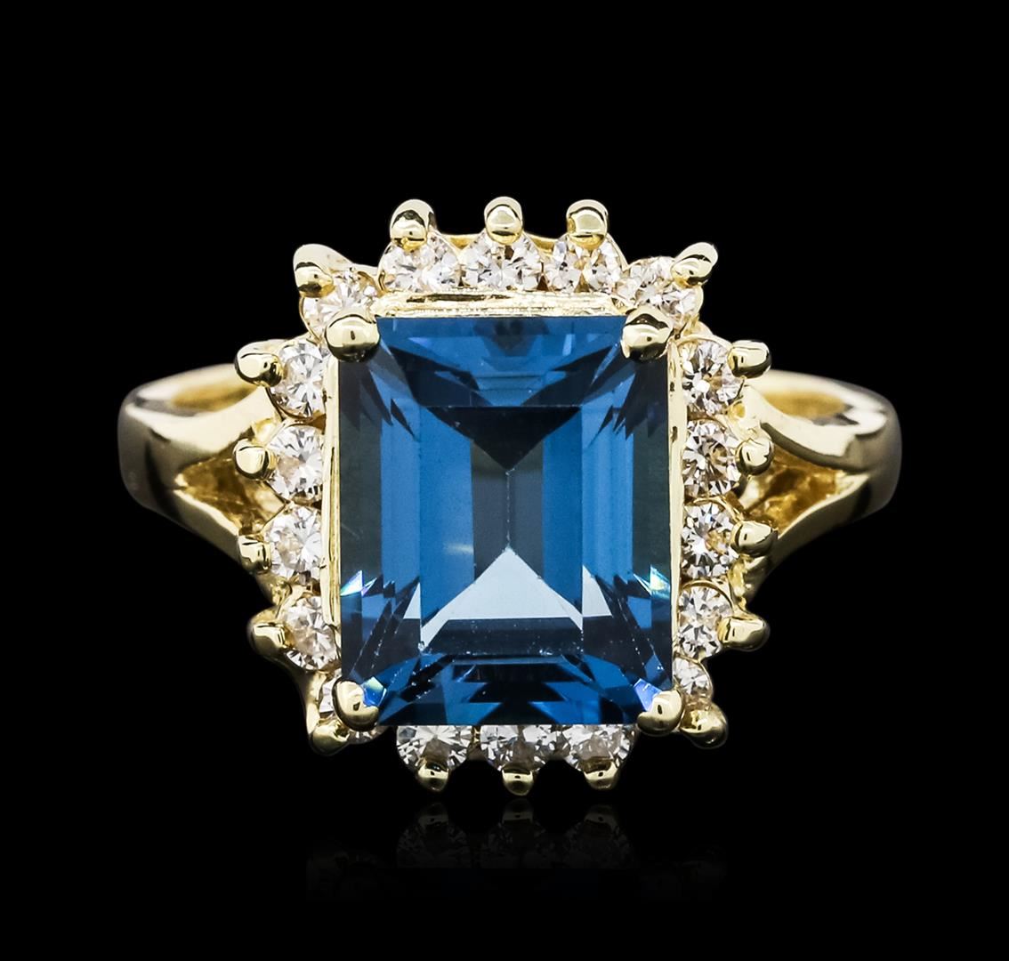 One ring featuring: 14KT yellow gold weighing 6.50 grams containing one blue topaz center stone with a total weight of 3.00ct and round cut diamonds with a total weight of 0.25cts.