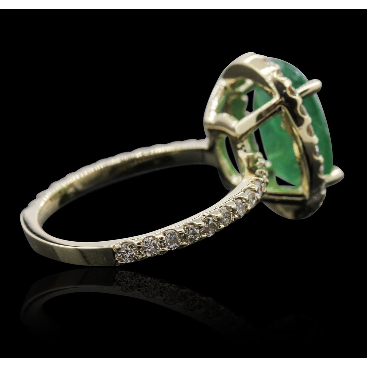 One electronically tested 14KT yellow gold Ladies combination cast & assembled fashion ring with a high polish finish. Condition is new. Identified with markings of "14K". Containing: One prong set oval modified mixed cut natural emerald, measuring 11.90 x 9.00 x 5.00mm, approximate weight of 3.01ct., clarity is heavily included, type III, medium light, moderately strong, very slightly bluish green color, (GIA vslbG 4/4), cut is good. Colored gemstones are presumed to have been subjected to commonly used and possible undetectable color/clarity enhancement processes. Forty-Eight prong set round brilliant cut diamonds, measuring 1.50 - 1.50 x 0.90mm (depth est.) approximate total weight of 48 Stones = 0.59ct. Clarity of SI-2 to I-2, Color of J - K, Cut is Good. Total Weight of Colored Stones 3.01ct. Total Weight of Diamonds 0.59ct. Total Weight of Ring 4.00 grams. GGL Appraised at $8,260.00.