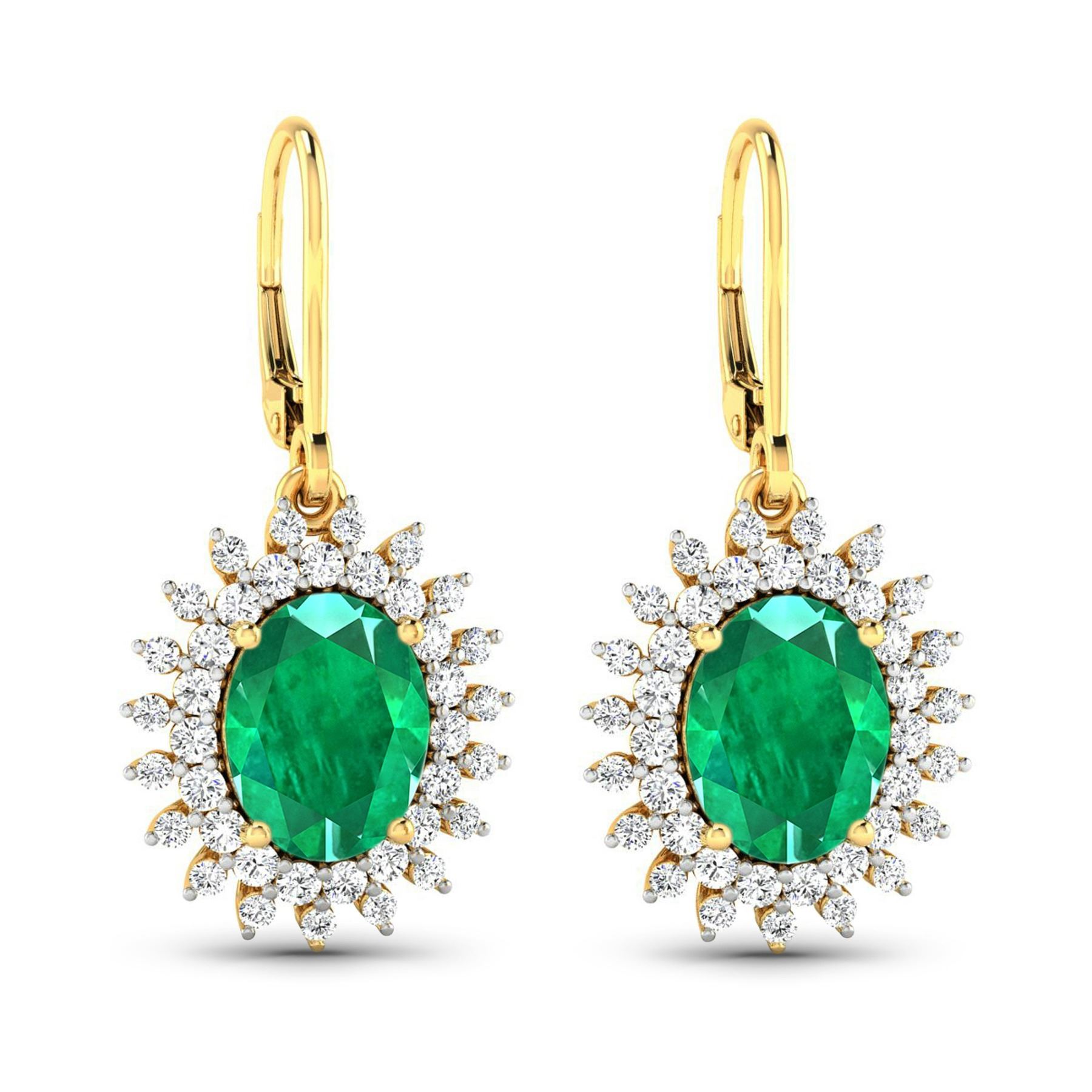 Zambian Emerald (AA) Oval 9x7mm - 2Pcs + White Diamond F/C Round 1.50mm - 38Pcs + White Diamond F/C Round 1.20mm - 38Pcs ( Diamond Quality : SI-2/HI ) Total weight of gemstones is 3.06cts. Total Diamond weight is 0.83cts. Total weight of these earrings are 4.15 grams.