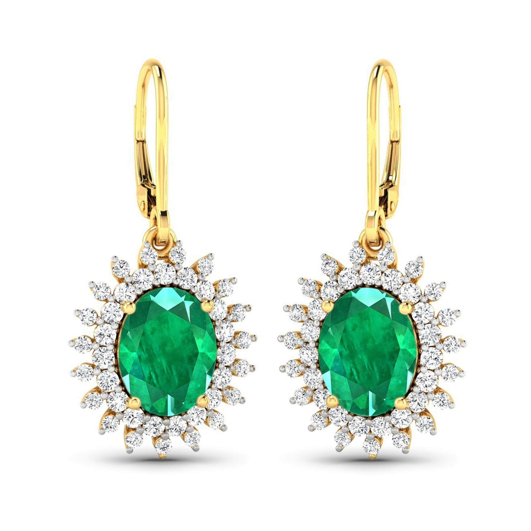 Zambian Emerald (AA) Oval 9x7mm - 2Pcs + White Diamond F/C Round 1.50mm - 38Pcs + White Diamond F/C Round 1.20mm - 38Pcs ( Diamond Quality : SI-2/HI ) Total weight of gemstones is 3.06cts. Total Diamond weight is 0.83cts. Total weight of these earrings are 4.15 grams.
