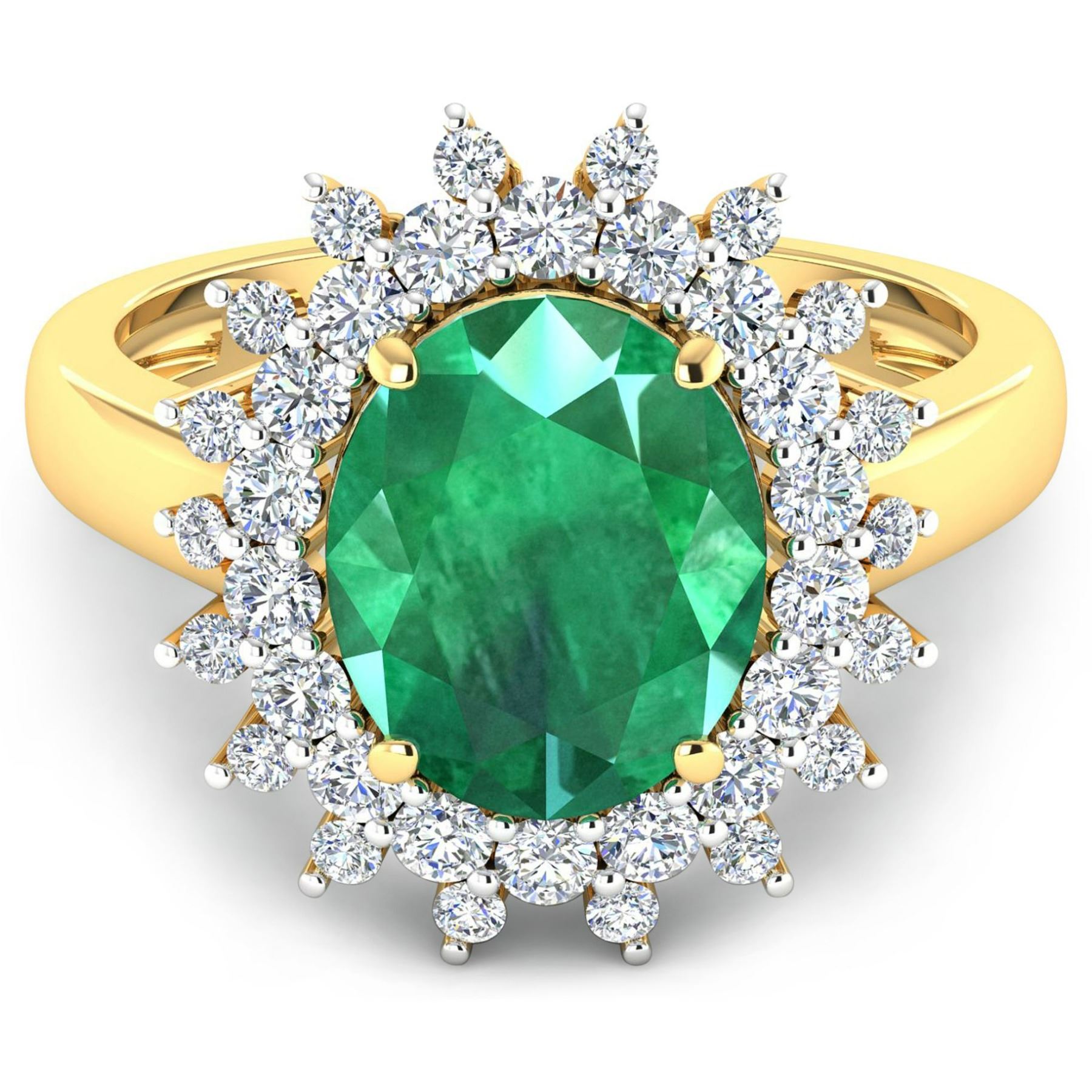 1 Zambian Emerald with a total weight of 3.14cts. Zambian Emerald (AA) Oval 11x9mm - 1Pc + White Diamond F/C Round 2.00mm - 18Pcs + White Diamond F/C Round 1.50mm - 18Pcs ( Diamond Quality : SI-2/HI ). Total weight of Diamonds is 0.79cts. Total weight of Ring is 4.31 grams. Ring size 7.