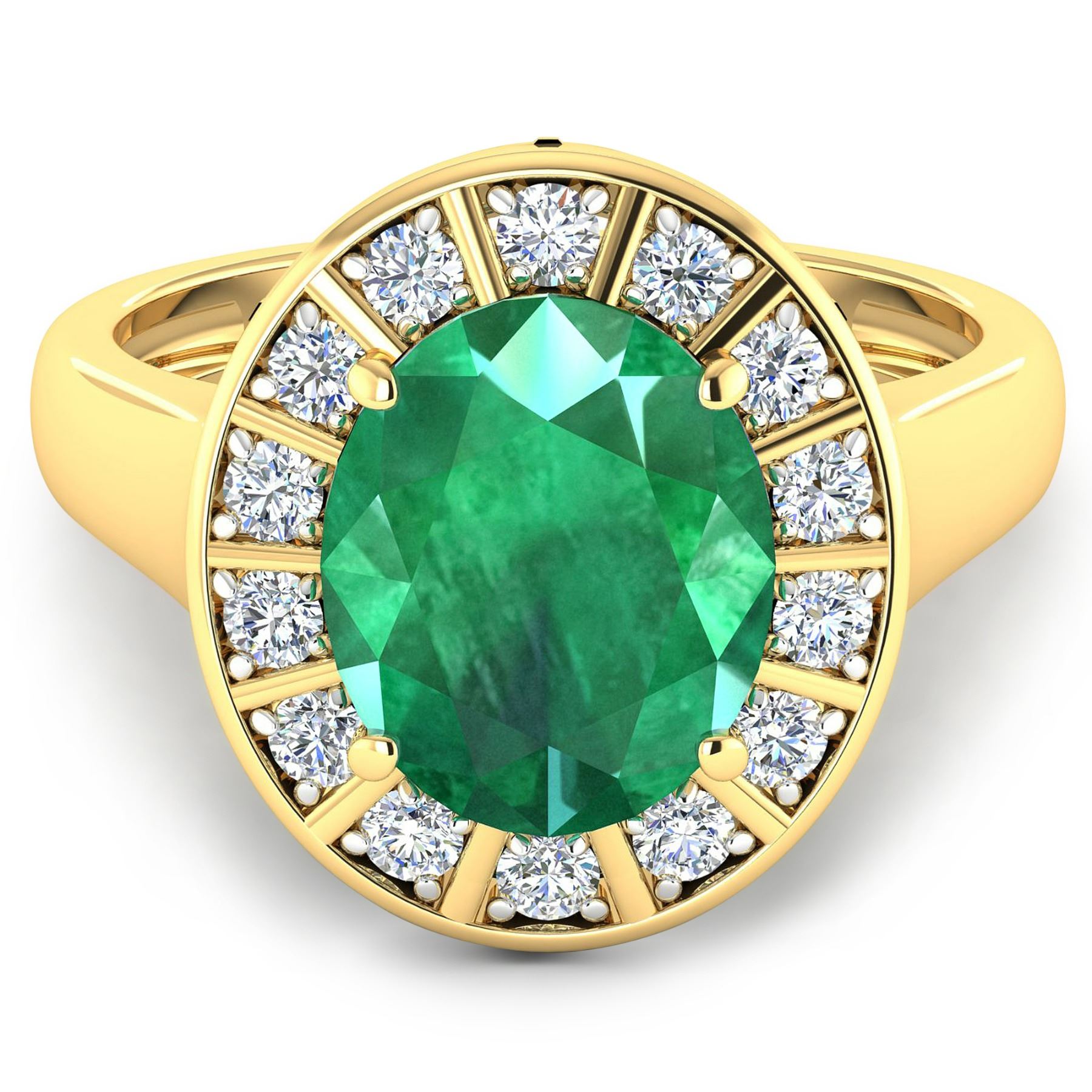 Zambian Emerald (AA) Oval 11x9mm - 1Pc + White Diamond F/C Round 2.00mm - 14Pcs ( White Pan Rhodium ) ( Diamond Quality : SI-2/HI ). Total weight of gemstone is 3.14cts. Total weight of Diamonds is 0.42cts. Total weight of this ring is 5.01 grams. Ring size 7.