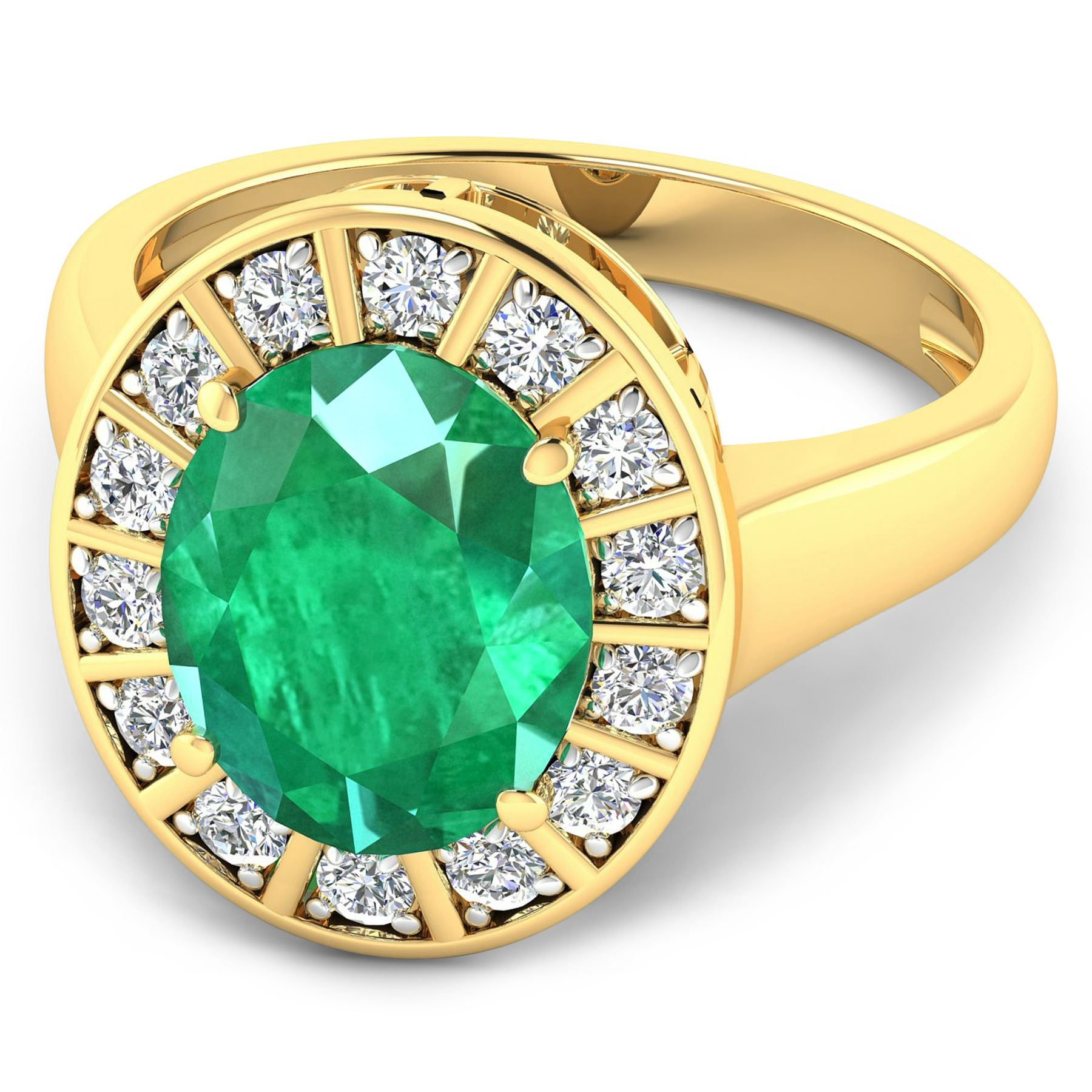 Zambian Emerald (AA) Oval 11x9mm - 1Pc + White Diamond F/C Round 2.00mm - 14Pcs ( White Pan Rhodium ) ( Diamond Quality : SI-2/HI ). Total weight of gemstone is 3.14cts. Total weight of Diamonds is 0.42cts. Total weight of this ring is 5.01 grams. Ring size 7.