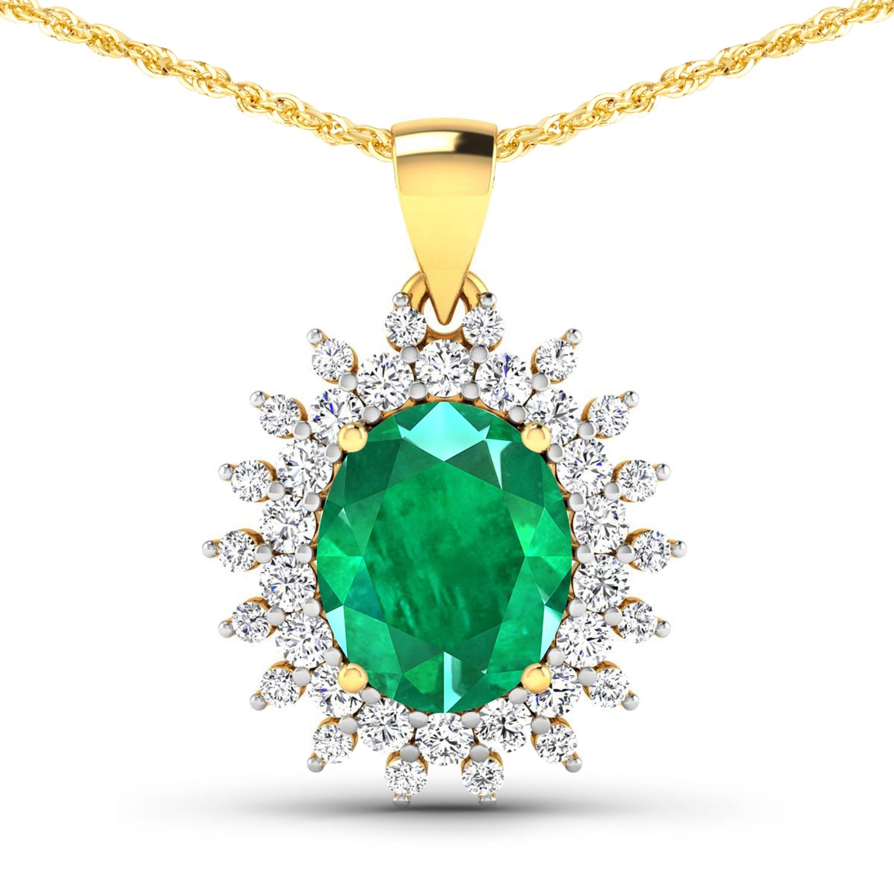 14KT Yellow Gold 3.14ctw Zambian Emerald and Diamond Pendant