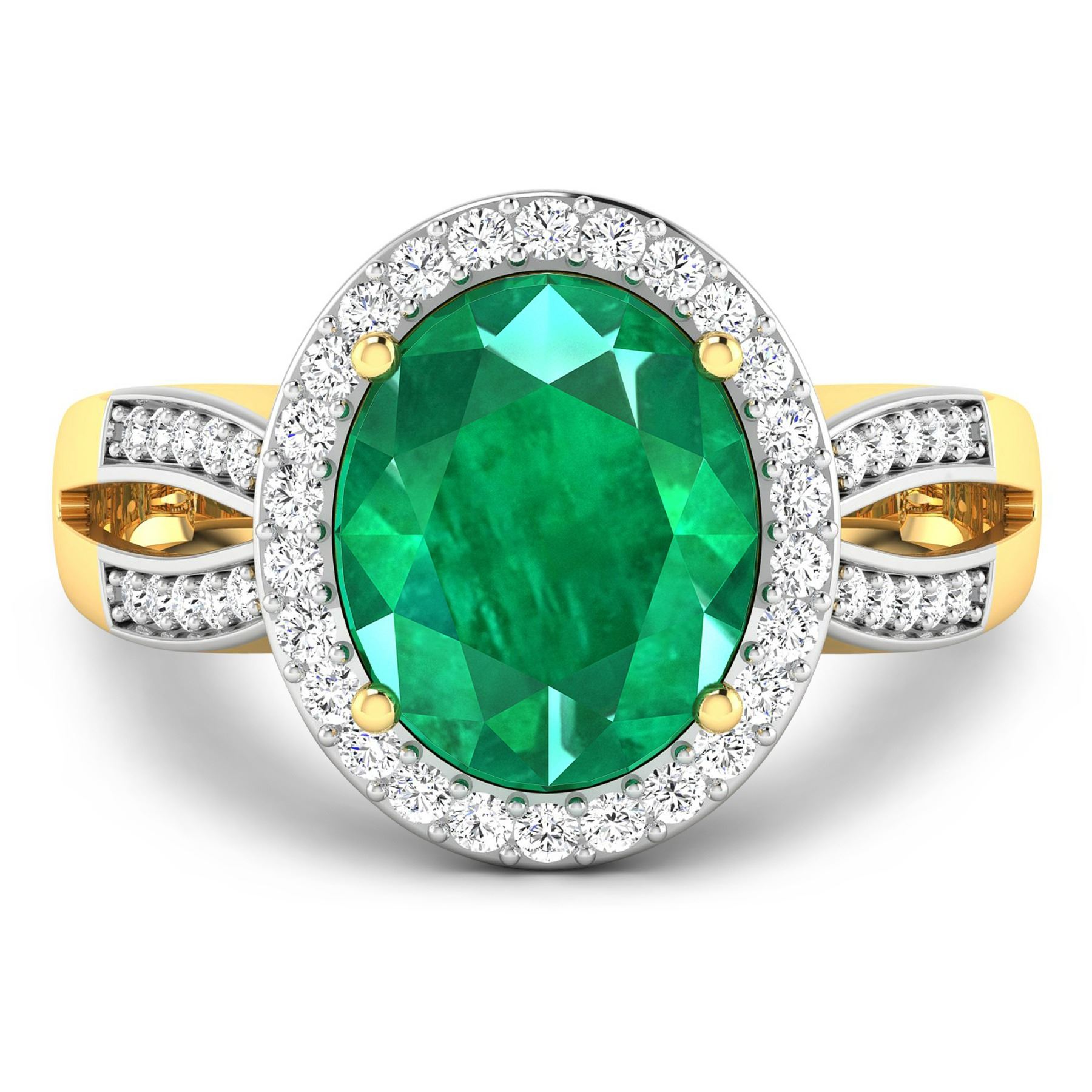 Zambian Emerald (AA) Oval 11x9mm - 1Pc + White Diamond F/C Round 1.30mm - 26Pcs + White Diamond F/C Round 1.10mm - 20Pcs ( White Pan Rhodium ) ( SI-2/HI ) Total weight of gemstone is 3.14cts. Total Diamond weight is 0.39cts. Total weight of this ring is 4.31 grams. Ring size 7.